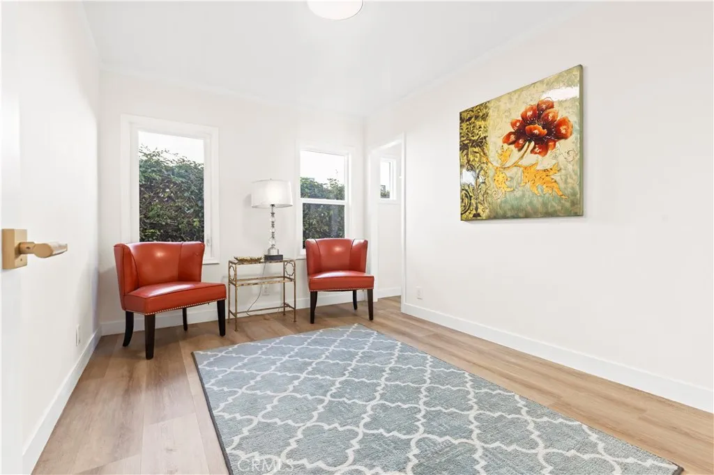 Beautifully updated Spanish-style single-story home with 2,190 sf on a desirable corner lot! The grand living room features coved vaulted ceilings and a striking fireplace. A versatile den/office or 5th bedroom offers extra space and flexibility. Enjoy new seamless flooring throughout and a brand-new kitchen centered around a 5-foot island. The work area features a sink overlooking the garden, dishwasher and stainless steel stove. The entire kitchen is flanked by a formal dining area and breakfast nook, which looks out onto the side patio—perfect for indoor-outdoor living or BBQ. The 4-bedrooms are spacious with large closets, and the 2-car garage with driveway parking can easily convert to an ADU for more living space. Upgrades include: LED lighting, 8mm SPC waterproof flooring, fresh interior/exterior paint, new dual pane windows. This turnkey home pairs timeless Spanish charm with modern comfort—ideal for multigenerational/large families or work-from-home living.