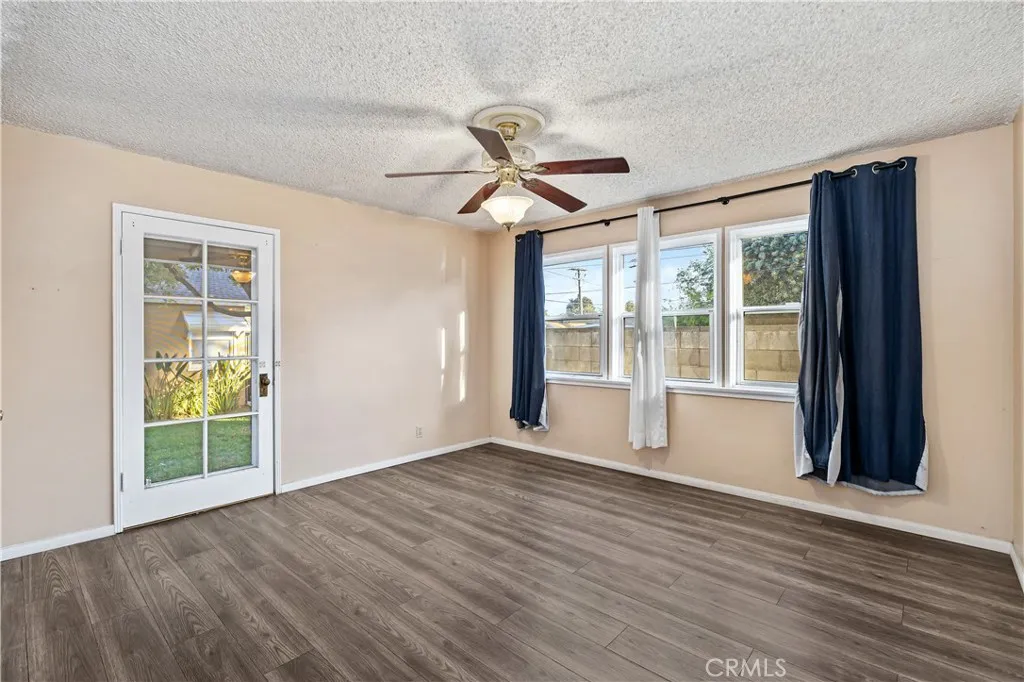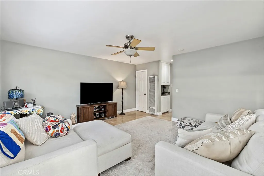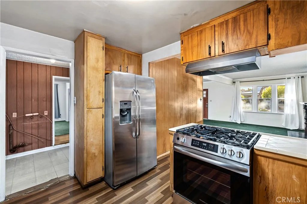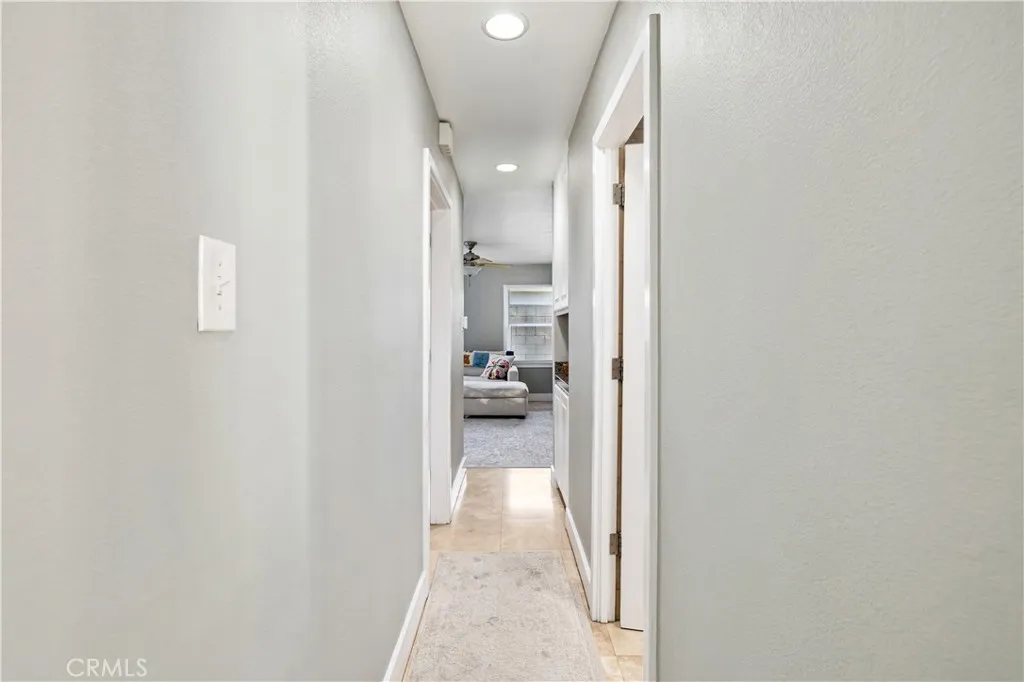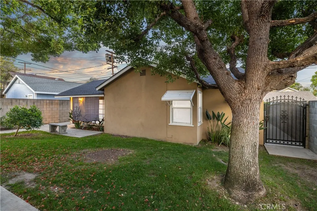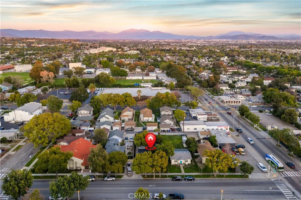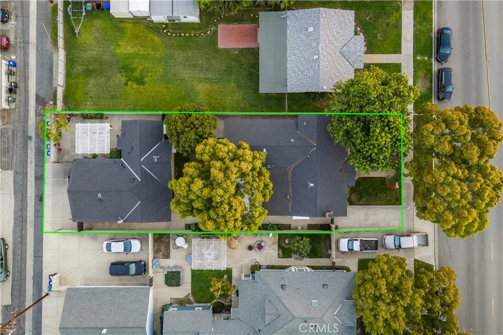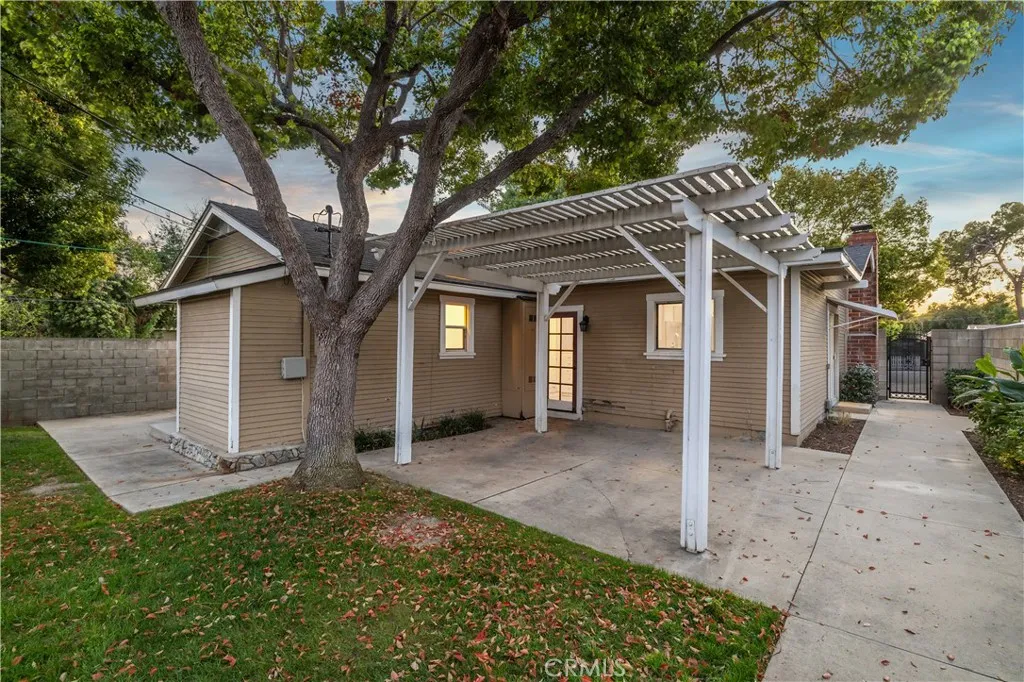 Located within walking distance to historic Downtown Upland and currently benefiting from the Mills Act, this two homes on one lot property at 548 N. 2nd Ave. and 548 1/2 N. 2nd Ave. features a front home with 3 bd, 2 ba, approx 1,488 sq ft plus a separate rear home/ADU with 1 bd, 1 ba, approx 683 sq ft, offering flexibility for rental income, guest house, or multi generational living. Each residence includes its own private garage, separate electric meter and gas, and individual laundry. The front Craftsman style home features a covered porch with stone accented columns, horizontal siding, and multi pane windows. The front yard includes mature shade trees, landscaped beds, lawn area, and a concrete walkway with a decorative garden arch framing the entry path. A long driveway along the side provides access to the rear of the property. The spacious living/family room offers large front facing windows, an original fireplace with wood mantel, and a wood paneled accent wall, plus a connected room ideal for a dining room/office. The layout flows into the kitchen and eating area creating a central living space. The kitchen features wood cabinetry, tile counters/backsplash, and a peninsula with a built in gas cooktop and vent hood. Laminate plank flooring in a parquet pattern extends through the kitchen and dining area. The dining space includes sliding glass doors to the side patio. Stainless steel refrigerator and freestanding gas range are included, with a nearby laundry room and storage. The hallway leads to the primary bedroom with hardwood flooring, corner windows, and an ensuite bath featuring an extended vanity, tile counter, built in storage, and a tub/shower with tiled surround. Two additional bedrooms offer closet storage and natural light. The hall bath includes a single sink vanity, walk-in tiled shower, and built in cabinetry. The backyard features mature trees, grass, and concrete patio areas with pergola covered seating space. The rear home has its own entrance to a living room with multiple windows and ceiling fan. A hallway with built in cabinetry leads to the kitchen featuring granite counters, white cabinetry, and stainless appliances, with a door opening to a private patio with pergola seating. The bedroom includes ceiling fan, large windows, and closet. The bathroom features a pedestal sink and tiled walk in shower. Two garages, one oversized garage for the front home and a standard size garage for the rear unit with laundry and storage.