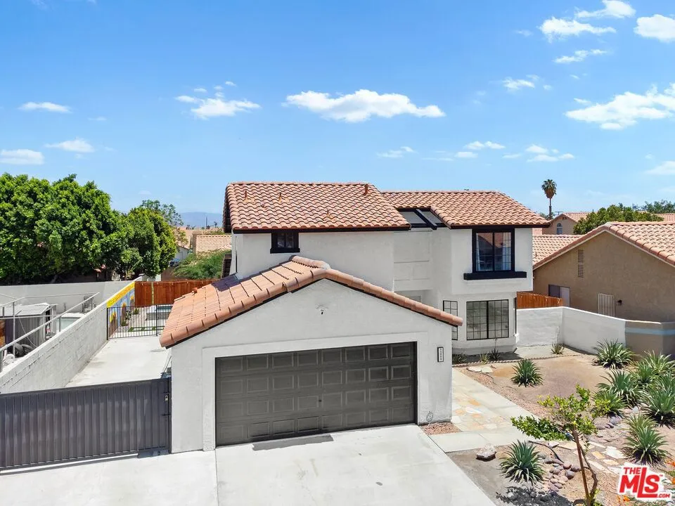 Welcome to 45808 Sutter Creek, a spacious desert retreat ideally positioned in the heart of Indio available starting May 15th for a 1 year+ lease. This two-story residence features 4 bedrooms and 3 bathrooms across approximately 1,787 square feet, with a thoughtfully designed layout that balances everyday living with relaxed entertaining. Natural light fills the main living areas, where a welcoming fireplace creates a warm focal point. The open flow between the living, dining, and kitchen spaces makes gatherings easy and comfortable. A desirable downstairs bedroom and full bath provide flexibility for guests, a home office, or multigenerational living. Upstairs, the primary suite offers a peaceful retreat, while additional bedrooms capture beautiful desert light and distant mountain views. The private backyard features a covered patio, sparkling pool and spa, perfect for morning coffee, evening dinners, or enjoying the desert air. Conveniently located near schools, parks, shopping, dining, and just minutes from the festival grounds, this home offers both lifestyle and location in the heart of the Coachella Valley.