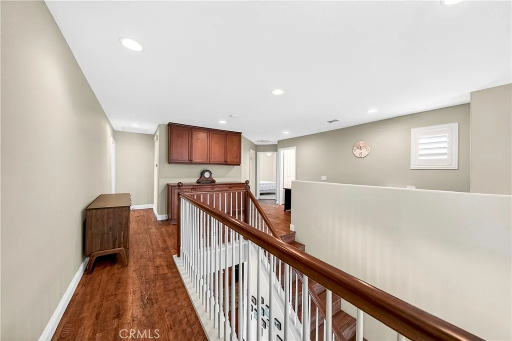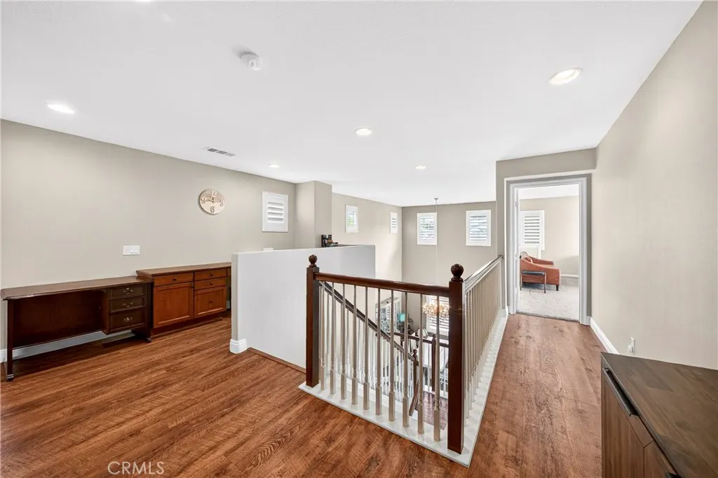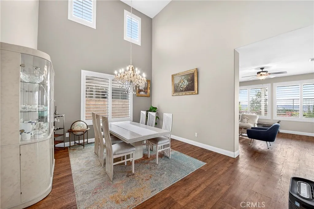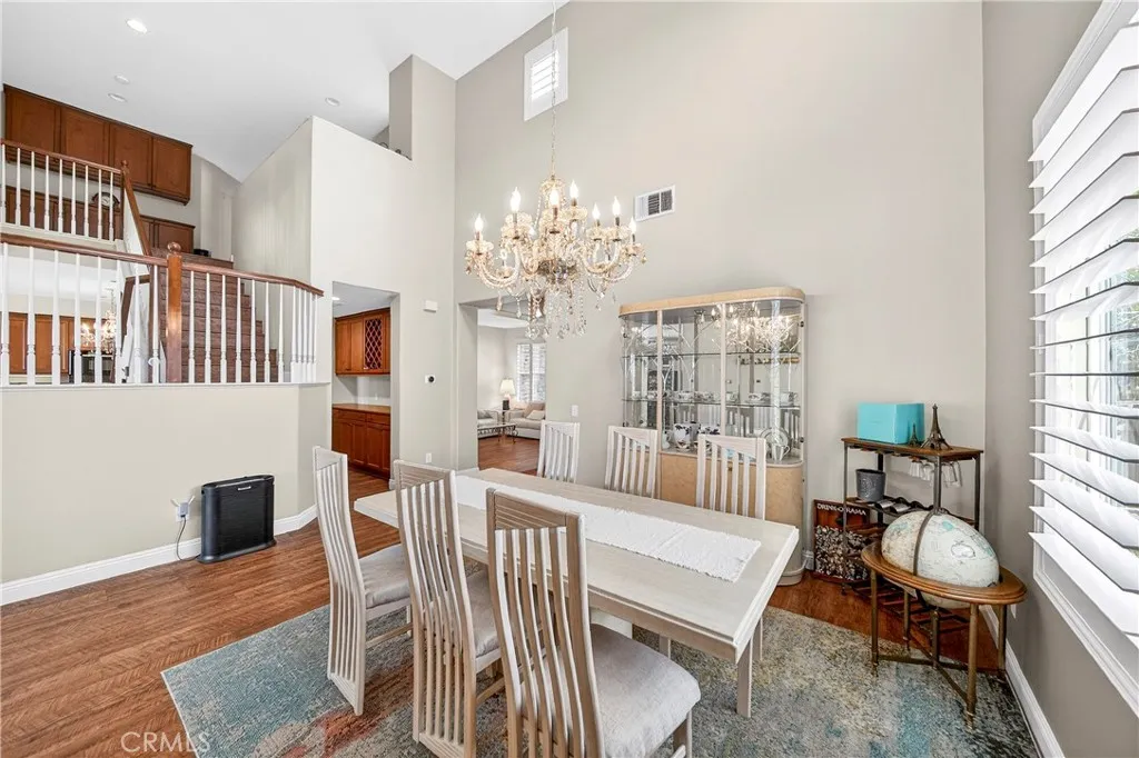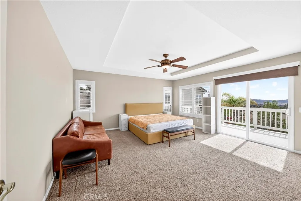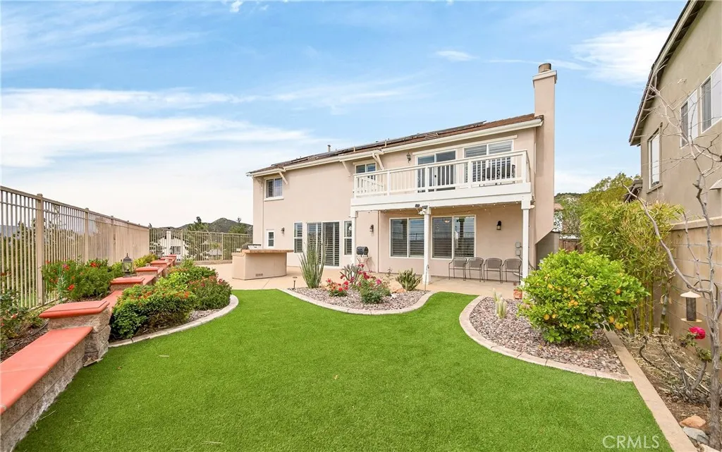 Location, Location, Location!! - Beautiful view home located in the prestigious Greer Ranch gated community, perched on gentle rolling hills overlooking the scenic Murrieta Valley. This spacious two-story residence offers approximately 3,201 sq. ft. of living space with 5 bedrooms and 3 full bathrooms on an 8,276 sq. ft. lot, built in 2004. The home features a desirable floor plan with one bedroom and a full bathroom on the main floor, ideal for guests or multi-generational living. The first floor includes a bright family room with a cozy fireplace, a formal dining area, and a spacious kitchen with granite counters, a pantry, and beautiful valley views. The second floor has 4 bedrooms and 2 bathrooms and a small office/loft area. The primary suite features a sliding door with access to a private balcony where you can enjoy panoramic views of the surrounding hills and city lights. Interior highlights include high ceilings, wood-style vinyl flooring, and window shutters throughout. The large laundry room, located on the first floor just beyond the dining room, has a separate entry/exit to the home. The backyard is also impressive, featuring a barbecue area and a beautifully landscaped garden. The property also includes central air conditioning, a 2-car garage, and leased solar panels. The front yard is spacious enough for RV parking, and as a corner unit, it offers added privacy and quiet. Located in a 24-hour security, guard-gated community with HOA amenities and within the Murrieta Valley Unified School District, this home offers privacy, scenic views, and comfortable Southern California living.