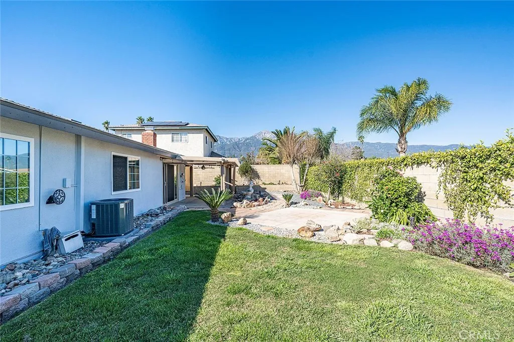 Fully remodeled and move-in ready, this beautifully upgraded 4-bedroom, 2-bath home offers 1,441 sq ft (per appraisal) of comfortable living space in a desirable Rancho Cucamonga neighborhood with stunning panoramic mountain views. Conveniently located near the 210 Freeway, Victoria Gardens, shopping, dining, parks, and local schools, this home combines convenience, comfort, and thoughtful upgrades. The home features a remodeled chef’s kitchen with a custom bar-style layout and a dedicated coffee bar, creating a great space for both everyday living and entertaining. Appliances included with the home are the refrigerator, washer, dryer, dishwasher, and stove. The bathrooms have been tastefully updated with finishes that blend style and functionality. The fourth bedroom is currently configured as a spacious office/storage area and can easily be converted back into a bedroom if desired. Some pictures are virtually staged. Recent improvements include a new electrical system with updated electrical junctions, upgraded plumbing piping, upgraded ductwork, added insulation including the garage and attic space, complete roof replacement, upgraded flooring, upgraded windows with shutters and blinds, and upgraded interior and exterior paint. The garage also features custom cabinets providing additional storage. Additional highlights include RV parking, privacy glass windows, a Ring Alarm security system, and a Tesla charger that will remain with the property. The backyard is designed for relaxation and entertaining, featuring two patio areas, a covered wrap-around patio, landscaped yard with a drip irrigation system, and a pre-installed slab ready for a future sauna or jacuzzi. Ideally located within walking distance to elementary, middle, and high schools, and just minutes from Chaffey College, Victoria Gardens, shopping, dining, and scenic parks. This is a wonderful opportunity to own a thoughtfully upgraded home in one of Rancho Cucamonga’s most sought-after communities.