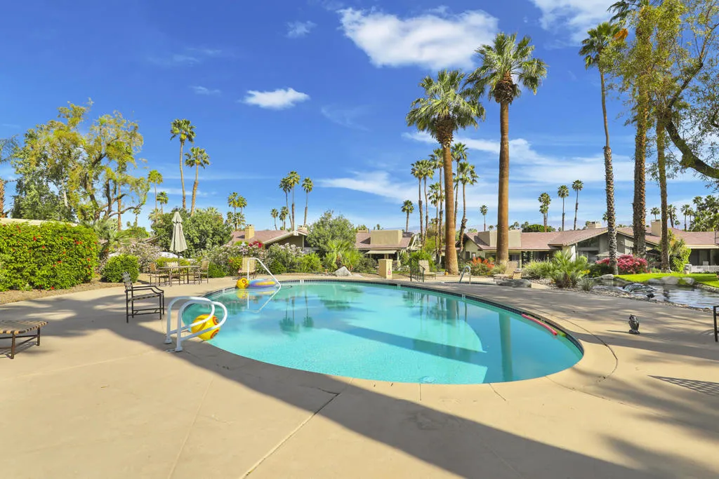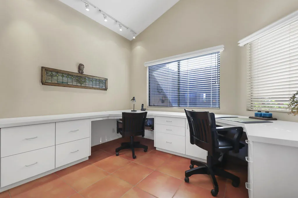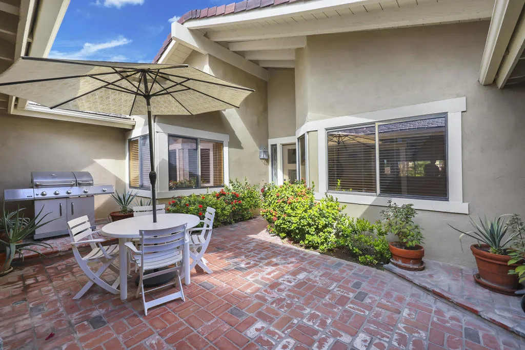 This rare Austin floor plan offers approximately 1,819 sq. ft. of open living space, filled with natural light from soaring windows and elevated to capture serene water views with tranquil waterfalls. Perfectly positioned at the end of a private cul-de-sac, this home enjoys a peaceful setting and is conveniently located just one door from a charming community pool and spa.Step outside to a custom brick patio enclosed with wrought-iron fencing, creating the perfect vantage point to relax and take in the beautiful water views. The sunny south-facing front courtyard is ideal for morning coffee or afternoon entertaining and leads to a golf cart garage, offering quick access to all the golf, racquet sports, and fitness amenities The Lakes Country Club is known for.Inside, the home features two spacious en-suite bedrooms plus a powder bath. The former morning room has been thoughtfully converted into a bright office overlooking the courtyard, providing a peaceful workspace.The kitchen has been stylishly updated with glossy black painted cabinetry, granite countertops, and a gas cooktop, and the home is beautifully furnished and move-in ready. Priced to sell quickly, this is a wonderful opportunity to enjoy the exceptional lifestyle and amenities of The Lakes Country Club.