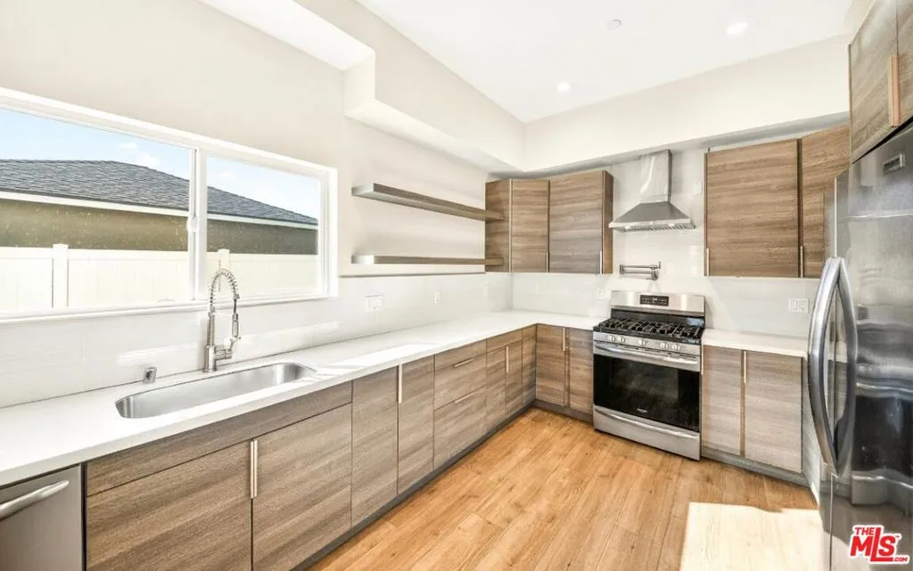Discover modern living at its finest in this stunning property located at 5641 1/2 Riverton Avenue, Los Angeles, CA 91601. This spacious two-story home offers approximately 2,500 square feet of living space with 4 bedrooms and 4 bathrooms, thoughtfully designed for both comfort and functionality.The home is accessed through a private entrance that opens into a bright and open main living area featuring beautiful wood flooring, high ceilings, and abundant natural light. The open-concept layout seamlessly connects the living room, dining area, and modern kitchen, creating the perfect space for everyday living and entertaining. The gourmet kitchen is a chef's dream, complete with stainless steel appliances, custom cabinetry, and a large island ideal for gatherings.The main level also provides access to a large fenced private patio, perfect for outdoor seating, entertaining, or relaxing in the California sunshine. A versatile den offers additional flexibility and can be used as a home office, gym, or flex space.Upstairs, the bedrooms are thoughtfully located on the upper level, providing privacy and separation from the main living area. The expansive primary suite serves as a peaceful retreat, featuring a private balcony, generous closet space, and a luxurious en-suite bathroom with modern fixtures. Additional bedrooms are well-sized and comfortable, making the layout ideal for families or professionals seeking dedicated sleeping areas upstairs and welcoming living spaces below.Additional highlights include in-unit washer and dryer and ample parking with an attached 2-car garage, plus 2 additional uncovered spaces. Conveniently located near local dining, shopping, and entertainment, this home offers the perfect combination of style, comfort, and location.