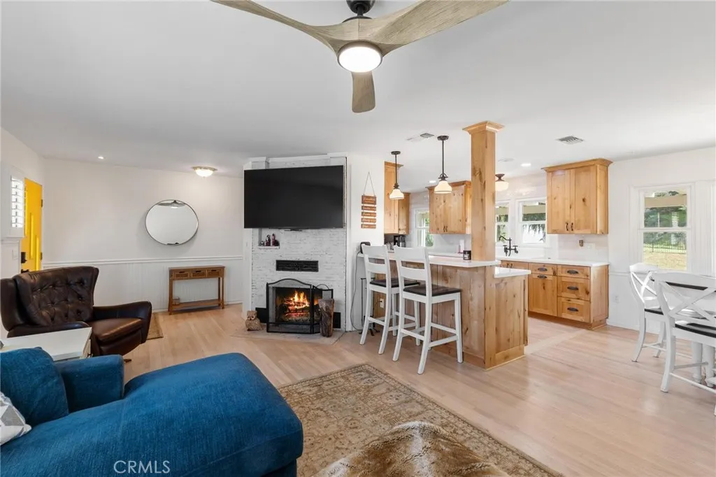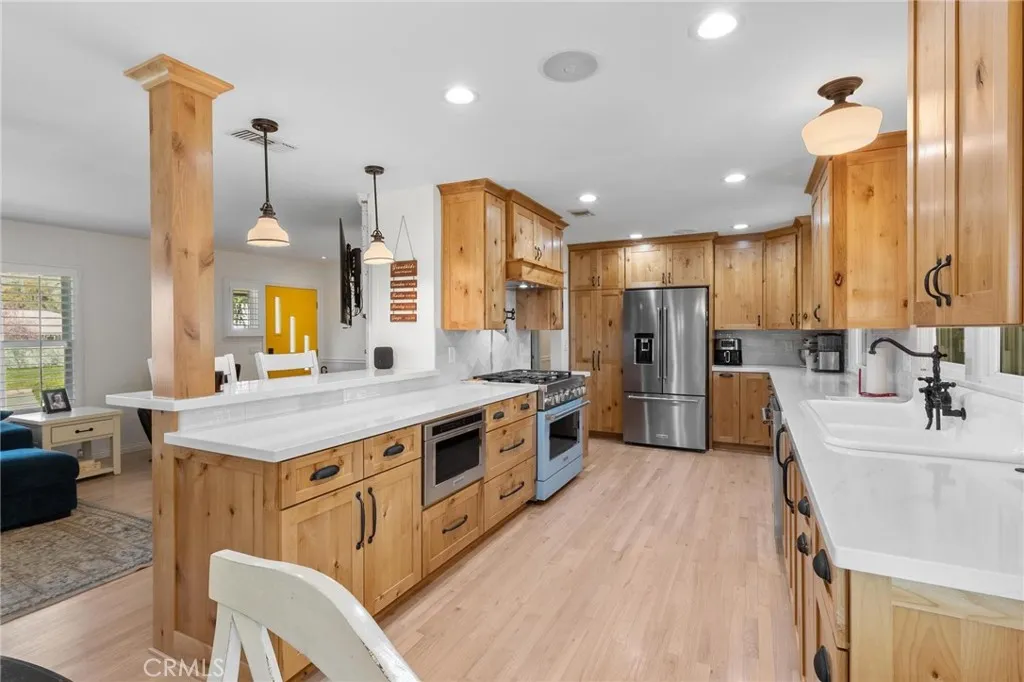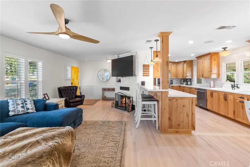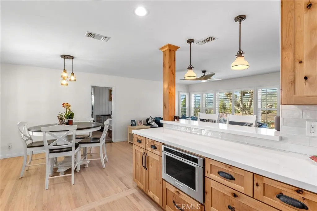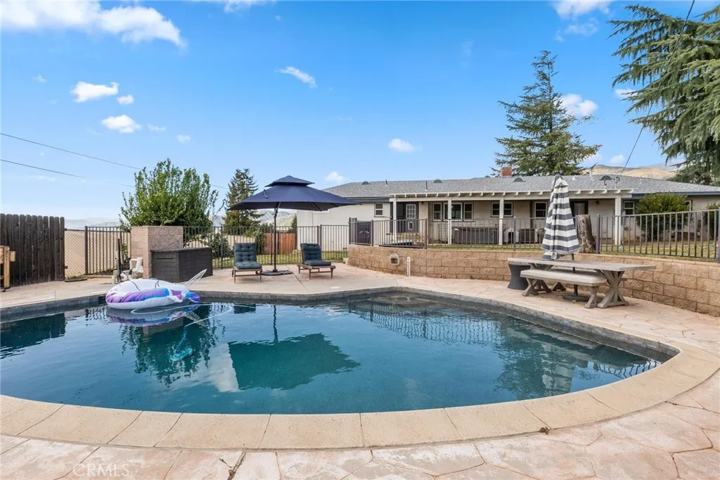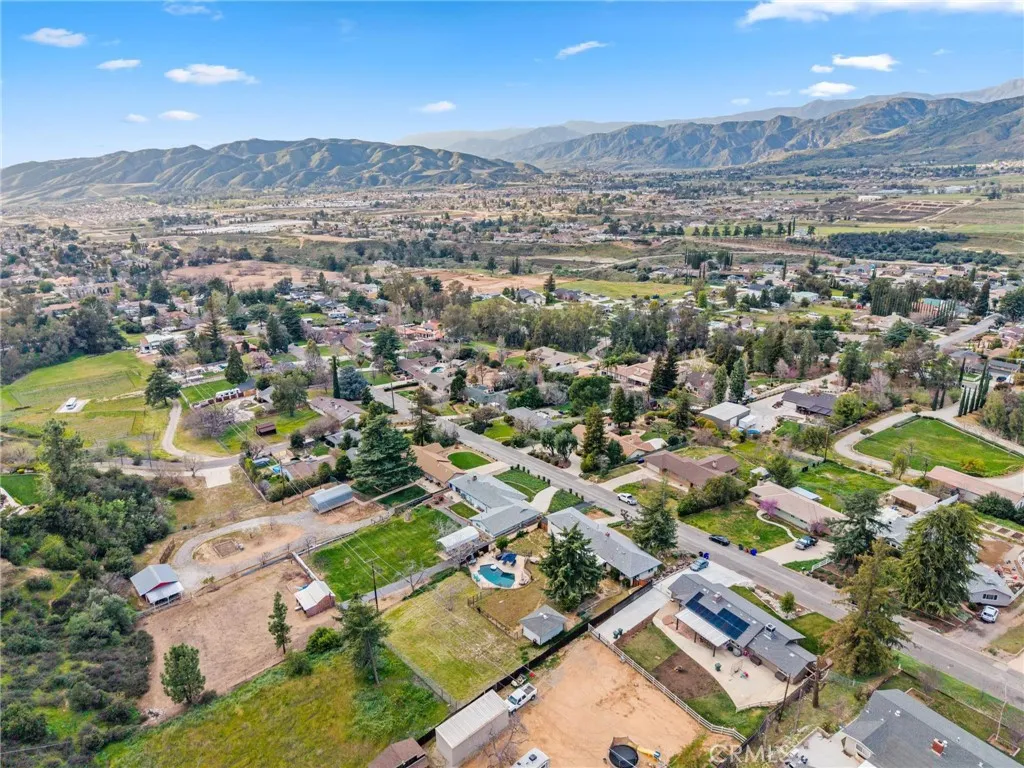 Welcome to this stunning single-story home perched above the valley in one of Yucaipa’s most scenic locations! Situated on an expansive 1.27-acre lot, this beautifully maintained property offers nearly 2,000 sq. ft. of living space, 4 bedrooms, 2 bathrooms, and a 2-car garage, all set against the backdrop of stunning panoramic views of the Yucaipa Valley that can be enjoyed from the front of the home, as well as from the living room and primary bedroom. Inside, you’ll find gorgeous hardwood flooring and a thoughtfully designed layout perfect for everyday living and entertaining. The completely remodeled kitchen is a true showstopper featuring custom knotty alder cabinetry, quartz countertops, accent tile backsplash, recessed lighting, a large farmhouse-style sink, and a convenient pot filler positioned above the commercial-grade gas range. High-end commercial-grade KitchenAid stainless steel appliances include a gas range, range hood, microwave, refrigerator, and dishwasher. A convenient bar-top seating area opens directly to the living room, creating a seamless flow for gatherings. Additional upgrades and features include dual-pane windows, plantation shutters, a newer modern front door, upgraded electrical panels, and an upgraded HVAC system for comfort and efficiency. Step outside to your own private retreat featuring an inground swimming pool, above-ground spa, covered patio, and storage shed. The expansive 1.27-acre lot offers incredible versatility, with plenty of space for potential RV parking, horses, gardens, additional structures, or whatever your vision may be—the possibilities are endless. A rare opportunity to own a view property with acreage, upgrades, and a spacious backyard in beautiful Yucaipa!