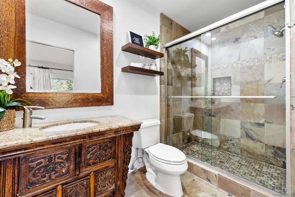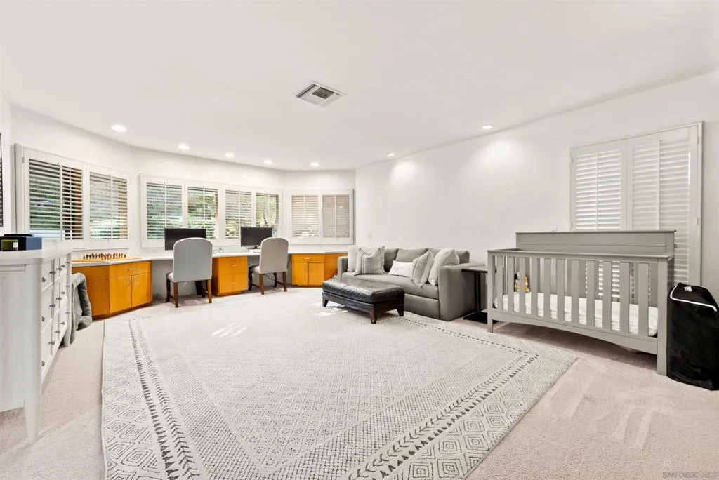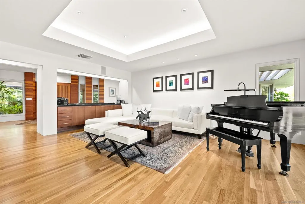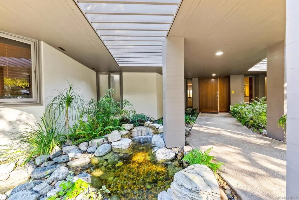 Welcome to this incredible, fully furnished and single level Rancho Santa Fe Covenant home equipped with with top-of-the-line amenities! Privately gated with only 4 homes on the street! Remarkable opportunity live in the West Side of the Covenant designed for refined living and long-term flexibility. This home boasts a modern kitchen bathed in natural light with quartz countertops, center island, hardwood floors and a Wolf 8-burner range, temperature controlled wine cooler, double ovens, walk in pantry. Opens seamlessly to the family room with a fireplace. A dedicated wing houses a primary suite which offers a serene retreat with a spa-like bath, walk in closet, walk in shower and a jacuzzi right out your door on the deck overlooking the property. Enjoy the soothing sounds of the babbling brook that surrounds the home! There is a large private 3-car, attached garage with EV charger and a workout area. Driveway accommodates at least 6 cars! Entertain in the spacious dining room and living room with a Steinway & Sons piano, seating for gorgeous fireplace. This is an ideal setting for both intimate gatherings or grand entertaining. With a large lot and gated entry, this home has been renovated and features 4 large bedrooms and 4.5 bathrooms. There are 3 spacious guest bedrooms - each with en suite bathrooms and there are 3 dedicated office spaces desks. Enjoy beautiful landscaping, large private backyard, outdoor dining area, pool, fire pit, lush greenery including a garden with fresh vegetables, multiple lounging areas perfect for sunset gatherings.