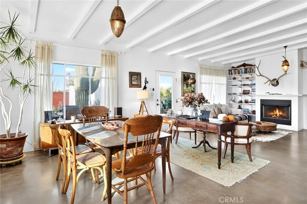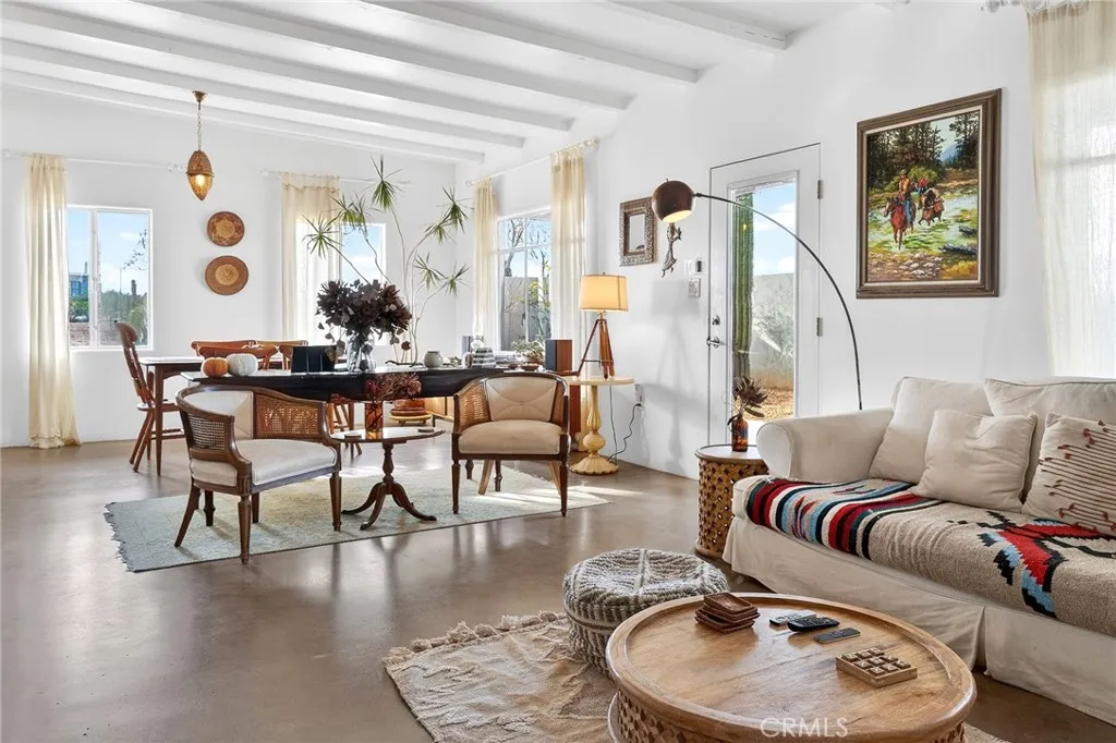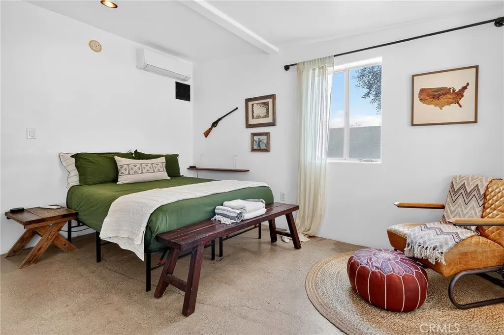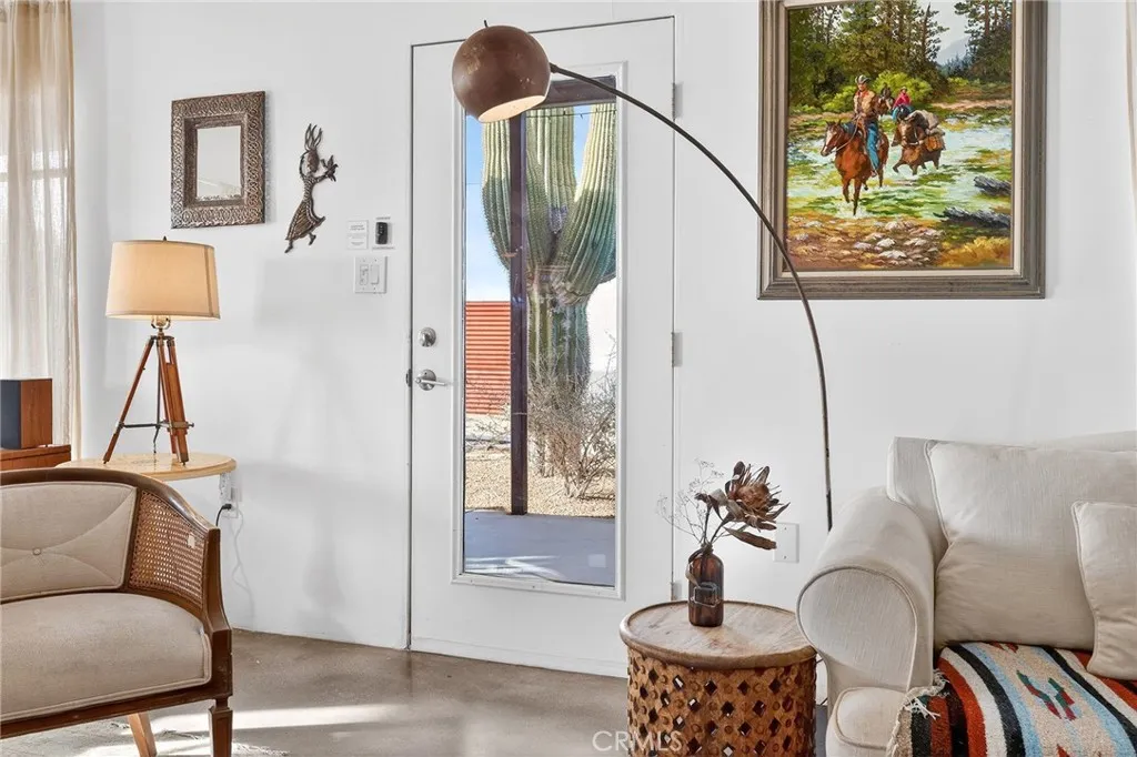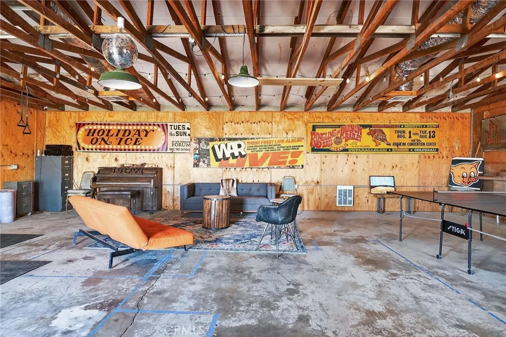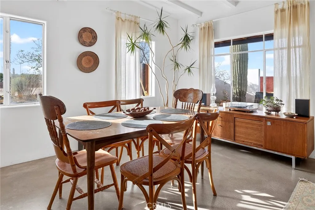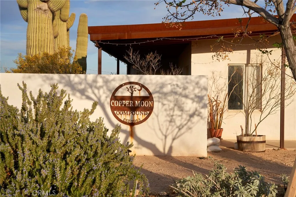 Set on a combined 5 acres—including a separate adjoining parcel—Copper Moon is a highly successful, turnkey short-term rental offering an exceptional investment opportunity in Joshua Tree. Privately situated along a quiet desert road with easy access, the property combines strong rental performance with the peaceful beauty and wide-open skies that define the high desert. The home features 3 bedrooms and 1 bathroom, with plans available for a future second bathroom, offering potential for expanded functionality and added value. The exterior features smooth stucco and a metal standing-seam roof for durability. The interior features a bright, open floor plan with inviting living spaces and a well-appointed kitchen designed for comfort and entertaining. Large windows bring in natural light and frame views of the surrounding desert landscape, creating a calm and welcoming atmosphere throughout. Complete with a wood-burning fireplace for those chilly desert evenings. Approximately 2.5 acres are fully fenced, forming a private compound centered around a thoughtfully designed courtyard with a saltwater pool, surrounded by mature saguaro cactus, olive and pomegranate trees, and vibrant desert flora. Outdoor spaces are arranged for relaxation and gathering, with lounge areas, a hot tub, a fire pit, and sweeping desert views. A standout feature is the oversized garage used as a gym and game room, equipped with a with exercise and strength training equipment, yoga space, and a ping-pong table—amenities that enhance the guest experience and contribute to the property’s strong rental appeal. Above it all, a dedicated star deck provides a memorable setting to enjoy Joshua Tree’s vivid sunsets and renowned dark night skies. Offered fully furnished (except for a few exclusions) and operating as a successful short-term rental, Copper Moon presents a rare opportunity for buyers seeking a turnkey desert investment, second home, or private retreat just minutes from Joshua Tree National Park, local shops, restaurants, and galleries.