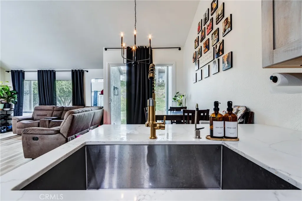 This 2 bedroom 2 bath corner unit condo located in the ridge gate community of Murrieta backs to a green belt and features vaulted ceilings, wood laminate flooring, a beautiful floor to ceiling stacked stone fireplace, fresh paint and much more. The gorgeous kitchen features designer cabinets and stunning quartz counters that are both functional and stylish. The primary bedroom features 2 large closets and the bathroom has been upgraded with a spacious walk-in tile shower. Sliding doors lead to your back patio area or private side courtyard. Community amenities include the swimming pool, spa, picnic areas, and walking paths. A golf course surrounds the community. With low taxes and conveniently located near shopping, schools, restaurants and freeway access, this one will not last!