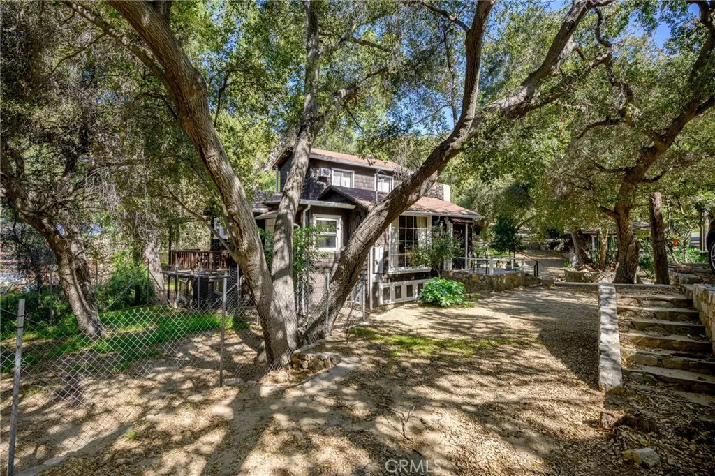 Tucked into the natural beauty of the canyon, this character-rich split-level home blends timeless architecture with everyday livability. Offering approximately 700 sq ft of bonus space, it showcases hardware, woodwork, and thoughtful details that speak to its craftsmanship. Step inside to a living room with a cathedral ceiling, classic wood-burning fireplace, and a large picture window that fills the space with soft, natural light. Just off the living room is the dining room, featuring a generous window seat and built-in shelving. Through the dining area, the well-sized kitchen offers wood cabinetry, updated tile flooring, and details that complement the home’s rustic character. A private balcony extends the space outdoors. A hallway off the living room leads to the first bedroom, where built-in drawer space and a second window seat create a cozy nook. The main bathroom sits along this hallway, offering a walk-in shower and separate soaking tub. From the hallway, stairs lead up to the primary bedroom—a peaceful retreat beneath another cathedral ceiling. The height and natural light give the room an airy yet intimate feel. After heading upstairs, follow the stairs down to a versatile lower-level suite. You arrive first in an adaptable flex space—perfect for an office or creative nook—before stepping into the living room. From this central space, a short hallway leads to the bedroom and remodeled 3/4 bath. Off the living room, an open entry reveals the kitchen-ready area, complete with an existing gas line and pre-plumbing, perfectly positioned for a future kitchenette and offering strong potential for an apartment-style suite, in-law unit, Airbnb, or dedicated workspace. Beyond the interior, a detached garage offers valuable bonus space, ideal for a workshop or future ADU. With five APNs, the property provides long-term flexibility, including the potential to sell parcels individually. The outdoor environment features a designated dog run, tranquil canal, rustic stone walls, and mature trees. Despite its serenity, the property is moments from Dexter Park and Community Center, dining, shopping, and Sylmar favorites—offering the best of canyon living with quick access to the city. It’s one of the few remaining pockets in LA that feels like true canyon living without being remote. A proven paid film location with potential for future compensated shoots, it’s a place where architectural integrity, natural beauty, and flexible living come together.
