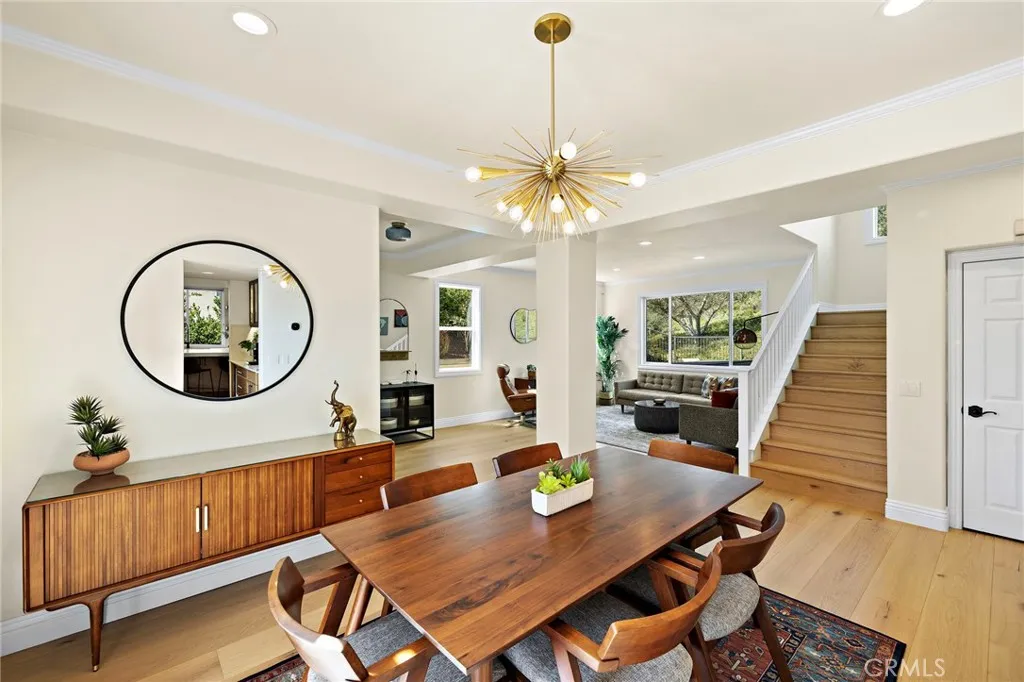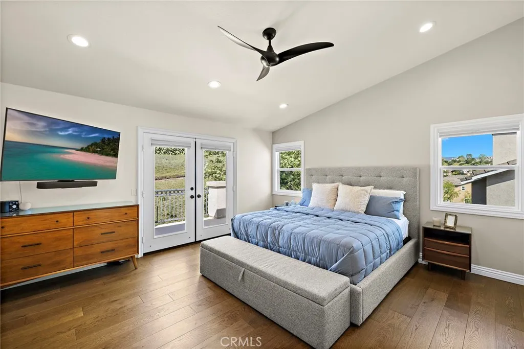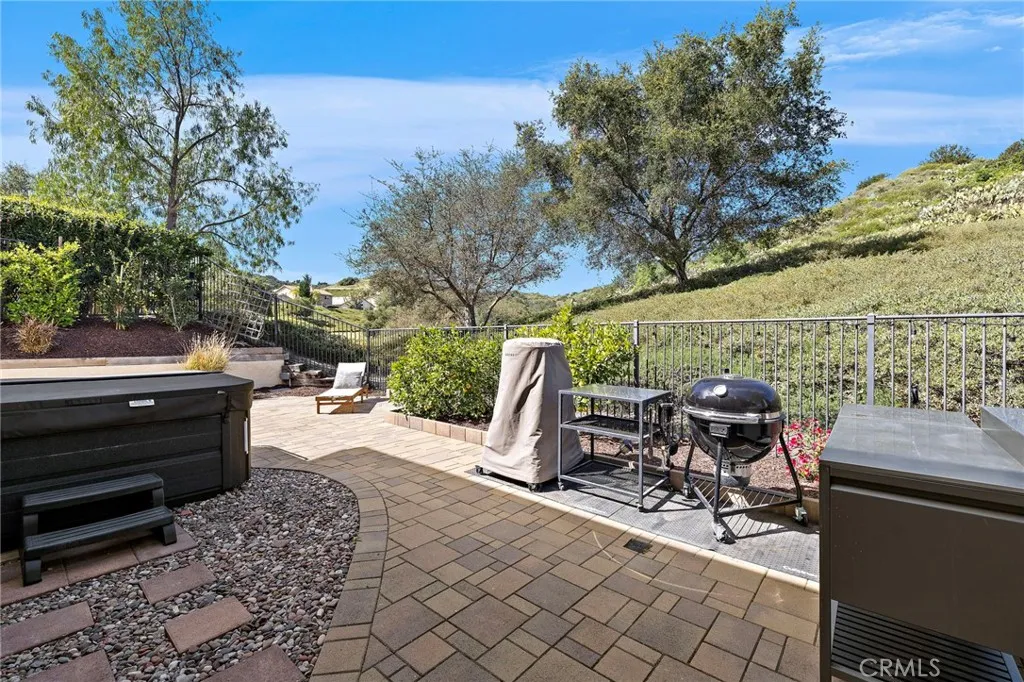 Situated in the gated community of Stonecliff this home is upgraded throughout with new gourmet kitchen, French Oak wood flooring, owned solar panels, new windows, new roof and new HVAC to name a few. This home blends modern comfort with quality finishes. French oak hardwood flooring runs throughout the downstairs, creating a warm and cohesive feel. The kitchen showcases a recent complete remodel featuring custom cabinetry and premium appliances, including a JennAir gas range, Miele dishwasher with built-in water softener, and sleek Kraus sinks—combining both functionality and style. Situated between the kitchen and formal dining area, a beautifully designed bar or coffee station features a prep sink, mini-refrigerator, and spacious pantry—ideal for everyday convenience and entertaining. The spacious family room, open to the kitchen, showcases a stunning rebuilt fireplace with a marble surround and custom tiled built-ins with floating shelves. A built-in surround sound system and dedicated AV cabinet complete an exceptional entertainment experience. Dining room open to the formal living area features French doors to a charming front patio featuring a pergola with integrated lighting—an ideal spot to relax and unwind after dinner. The upstairs showcases the primary suite and four generous secondary bedrooms, one of which is large enough to serve as a bonus room. The primary suite features French doors opening to a balcony with serene canyon views, and an updated bathroom with new vanities, quartz countertops, and two custom closets. The private backyard offers a peaceful retreat with pavers, mature lemon trees, and a spacious eight-person jacuzzi with quiet filtration and dual pumps. Backing to a serene canyon with no homes behind, the setting provides exceptional privacy and tranquil views. Additional upgrades include a rare finished utility room (previously the 3rd car garage), tankless water heater, whole-home WiFi wiring, integrated security cameras, upgraded lighting with dim-to-warm switches, enhanced under-stairs storage, garage with epoxy flooring, abundant storage, and EV charger. Ideally located across from the community pool and near parks, scenic trails, and highly regarded Wagon Wheel Elementary School and Tesoro High School, the home also offers convenient access to the 241 Toll Road. A rare opportunity to own a home where thoughtful upgrades, comfort, and setting come together seamlessly.
