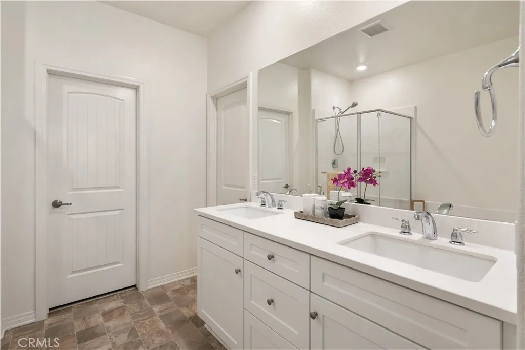 Welcome to this beautifully maintained 2-bedroom, 2.5-bath home located in one of Eastvale’s most sought-after gated communities. Thoughtfully designed for both comfort and functionality, this residence features two spacious en-suite bedrooms, offering privacy and flexibility for multi-generational living, guests, or roommates. The bright open-concept floor plan seamlessly connects the living, dining, and kitchen areas, creating an inviting space ideal for both everyday living and entertaining. The modern kitchen is appointed with granite countertops, stainless steel appliances, a center island, and ample cabinetry for storage and convenience. On the main level, you’ll find a convenient powder room (half bathroom) along with an additional storage room, providing practical space for everyday needs. Upstairs, both primary suites offer generous closet space and well-appointed bathrooms, delivering comfort and practicality. Residents enjoy resort-style community amenities, including a pool, spa, cabanas, playground, and outdoor recreation areas, all within a secure gated setting. Association-maintained exterior care provides a low-maintenance, lock-and-leave lifestyle. Conveniently located near shopping, dining, parks, and major freeways, this home presents an exceptional opportunity to enjoy privacy, comfort, and community living in one of Eastvale’s most desirable neighborhoods.