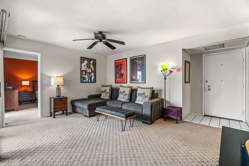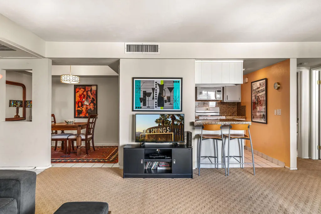 Stunning South End Biltmore II Condo with Spectacular Mountain Views! Nestled in the highly desirable South End of Palm Springs, this exceptional fully furnished Biltmore II condo offers breathtaking west-facing mountain views and unforgettable desert sunsets. Overlooking the beautifully heated pool and spa, this residence is surrounded by lush landscaping, creating the perfect retreat--whether you're seeking a full-time home, a seasonal getaway, or a lucrative rental investment. Step inside and be captivated by the bright and airy layout, where sliding glass doors lead to a private, covered balcony--perfect for savoring your morning coffee or unwinding with a glass of wine as the sun dips behind the mountains. The spacious primary suite boasts an elegant en-suite bath with a sleek walk-in shower, providing a serene space to relax and recharge. The stylishly updated kitchen features modern granite countertops, a breakfast bar, ,wine bar and an open-concept design that seamlessly flows into the living area--ideal for entertaining. Additional highlights include a dedicated carport just steps away, secure building access with an elevator, and an unbeatable location just minutes from downtown Palm Springs' vibrant dining, shopping, and entertainment scene. Enjoy resort-style amenities, including a sparkling heated pool and spa, a shaded cabana, and three gas barbecues--all designed for effortless outdoor living. Whether you're looking for a tranquil escape or a high-demand rental opportunity, this rare gem checks every box. Don't miss your chance to own a piece of the iconic Palm Springs lifestyle!