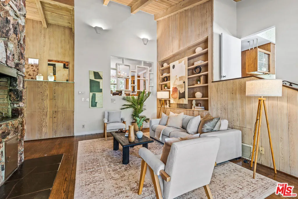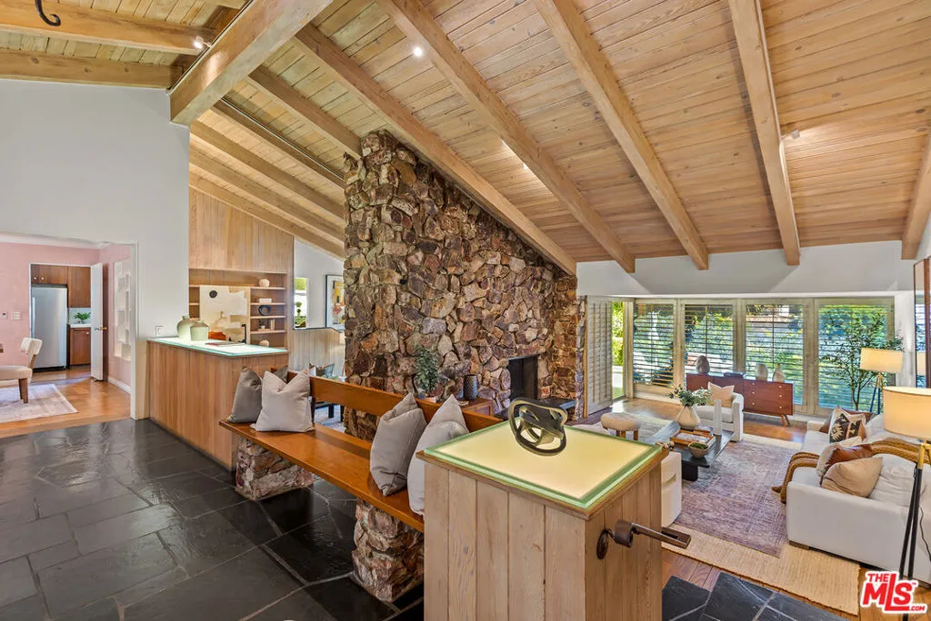 Incredible Lower Bel-Air opportunity built from original plans by legendary architect Gerard Colcord. Whether thoughtfully renovating, modernizing, or reimagining, this tri-level residence presents a rare chance to restore and elevate a special architectural home. Built in 1961, the property offers 3 bedrooms, 2.5 bathrooms, and approximately 2,805 SQFT of living space set on an 8,401 SQFT lot. Rich with character and nuance, the home showcases intricate design details that reflect Colcord's timeless style. Unique in both layout and atmosphere, the residence offers a cool, distinctive vibe rarely found in homes of this era, with a multi-level floor plan that creates separation, volume, and visual interest throughout. Featuring rich slate tile and hardwood flooring, the home showcases stunning cathedral ceilings with exposed wood beams and fireplaces in both the living room and the family room. Each space is enhanced by sliding glass doors that open to a relaxing rear yard and patio, perfect for indoor-outdoor living and entertaining. The cook's kitchen is highlighted by built-in appliances, a sun-filled breakfast nook, and convenient access to a charming dining room perfect for gatherings. The primary suite offers his and hers closets, a dressing area, and a private en-suite bathroom featuring a quartz-topped vanity, updated shower, and tranquil atrium. Additional highlights include a direct-access oversized two-car garage, central air and heat, and two separate bonus basement rooms - perfect for a home gym, storage, workshop, or other flexible spaces. Conveniently located near Brentwood Village, Malibu, Skirball Cultural Center, The Getty, UCLA, Sunset Strip, and Beverly Hills' Golden Triangle, with easy access to freeways and everything the Westside has to offer. With great bones and undeniable personality, this is a true Bel-Air original ready for its next chapter.