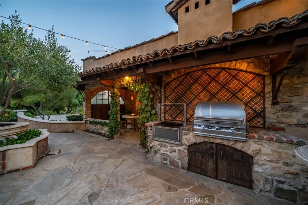 A tennis enthusiast's dream! This extraordinary estate showcases exceptional craftsmanship, striking stonework, and thoughtfully designed amenities that seamlessly blend luxury with lifestyle. A stone-lined driveway welcomes you to a spacious motor court featuring a detached five-car garage and covered carport—perfect for RVs, trailers, or additional equipment. Low stone walls and manicured hedges guide you toward the main residence, while just beyond the garage a covered patio and workshop overlook a stunning central courtyard. Here you’ll find an outdoor kitchen, wood-fired pizza oven, built-in firewood storage, and a dramatic stone fireplace that creates a warm and inviting gathering space. From the front lawn a pathway leads to a professional-grade multi-sport tennis and pickleball court complete with night lighting, viewing areas, a swing-out basketball hoop, and bar seating—an ideal setup for both serious play and social gatherings. In the backyard, a built-in hot tub and cozy firepit offer the perfect setting for relaxing evenings under the stars. Inside, the home is airy and inviting, highlighted by soaring beamed ceilings, decorative windows, and custom wood-and-metal chandeliers. Concrete floors provide natural cooling, while a dramatic floor-to-ceiling stone fireplace anchors the main living area. Just off the living room, a private office and half bath. The chef’s kitchen features a gas range with custom hood, oversized Viking refrigerator, expansive center island with prep sink and seating, walk-in pantry, beverage center, and an open dining area . A charming walk-through mudroom with built-in storage and courtyard views connects seamlessly to the outdoor living spaces. The main-level primary suite offers a peaceful escape with a spacious walk-in closet and spa-like bath featuring dual sinks, a walk-in shower, soaking tub, and large sliding doors that open to the front yard and hillside views. A cozy bonus room with fireplace opens to the backyard, while barn doors reveal a spacious laundry center with storage and folding counter. Upstairs, a sitting area opens to two additional bedrooms, each featuring private ensuite baths. Additional highlights include a detached guest studio with full bath, storage barn, raised garden beds, and pastureland. Crafted with remarkable attention to detail, this one-of-a-kind estate is designed for a seamless indoor-outdoor lifestyle and is a must see!