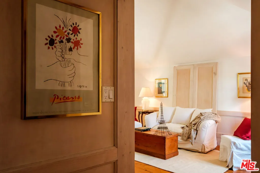 At the end of a quiet Canyon Lane, where the ocean air drifts in and time seems to slow, sits a home unlike any other. First time on the market, this remarkable Parisian townhouse-inspired residence is discreetly tucked away in Santa Monica Canyon, just blocks from the beach, Canyon Elementary, and the Huntington stairs leading to Palisades Village. Designed in 1983 by architect O. Douglas Philips, AIA, the home offers approximately 3,000 sq ft with 3 bedrooms plus bonus room, 3 bathrooms, and a rare three car garage. Architectural character defines the residence, with high ceilings, five fireplaces, and vintage herringbone wood floors, evoking the elegance of a European townhouse adapted for California coastal living. Surrounded by greenery and set apart from through traffic, the property offers a sense of privacy with a charming, secluded patio, sunroom and balconies. Such calm is rarely found so close to the ocean and village amenities. A truly special architectural offering in one of the Westside's most coveted enclaves. Welcome to Provence!