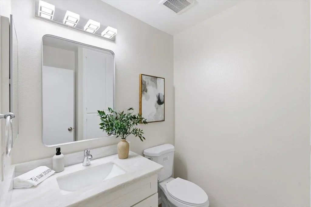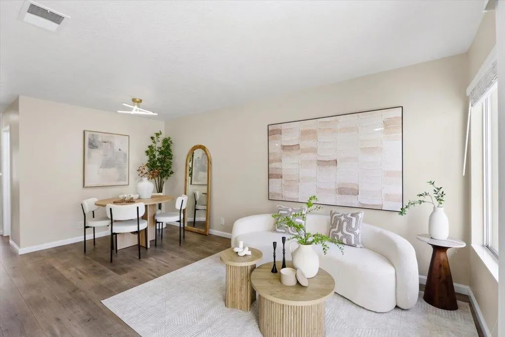 Welcome to this well maintained top floor 2 bedroom, 1.5 bath home tucked inside a quiet location within the community in the heart of Sunnyvale. Offering approximately 785 sqft of living space, it combines convenience with a bright and inviting atmosphere. The home features SPC flooring and abundant natural light throughout. The living room flows seamlessly into the dining area, creating a functional layout ideal for both everyday living and casual gatherings. The kitchen is equipped with customized cabinetry, granite countertops, and SS appliances, offering both style and practicality. It includes two spacious bedrooms along with a full bathroom and a half bathroom, providing comfortable living spaces. A large private balcony offers a relaxing outdoor area, perfect for enjoying fresh air. Both bathrooms have been updated with modern mirrors and vanity lighting. Additional improvements include a new water heater and furnace installed in 2020, adding comfort and energy efficiency. Conveniently located minutes from Downtown Sunnyvale, Caltrain, major freeways (101, 237), and major tech campuses including Apple, Nvidia and Google, it offers excellent access to shopping, dining, and parks. The HOA covers water, garbage, earthquake insurance, and other community maintenance.