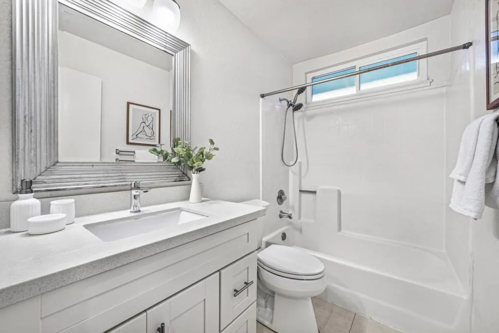 Nestled near the San Jose Municipal Golf Course and Townsend Park in one of the best neighborhoods in North San Jose, this beautifully updated single-family home offers modern upgrades, spacious living, and convenient access to major tech hubs. The home features a bright, open living room with soaring high ceilings and a newly remodeled fireplace wall. The entire first level has been upgraded with durable new wood flooring. The kitchen is thoughtfully designed with quartz countertops, modern lighting, upgraded cabinets, and updated appliances, seamlessly connecting to the dining and living areas. New chandeliers in both the living and dining rooms enhance the homes contemporary style, while new wall sconces provide warm ambient lighting. The hall bathroom was recently remodeled, and the primary bathroom features newer vanities, mirrors, and lighting. Additional highlights include central heating and air conditioning, and a side-by-side two-car garage. The home sits on a generously sized lot, offering both space and privacy. Ideally located near major conveniences including 99 Ranch Market, Costco Wholesale, the local post office, and a variety of shopping and dining options. Commuters will appreciate easy access to Google shuttle stops and proximity to major tech employers.