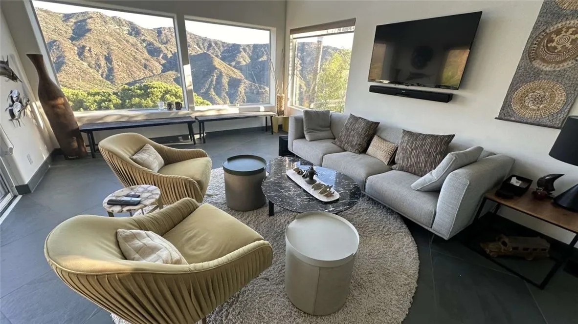 Beautiful architect-designed 3-bed plus den 3.5 bath mountain view home in Malibu. Original owner, completely upgraded featuring Carrara marble, Vermont slate, Brazilian cherry and expansive glass views of Santa Monica Mountains Conservancy. Architectural geometric plan with glass rails, solid core wood doors with frosted glass, fully upgraded bathrooms with limestone and microcement. Flat fenced yard below. Great safe, quiet neighborhood within highly rated Malibu Unified school district. 6 minutes to beach and Solstice Canyon hiking, 3 minutes to ridge trails. Move in ready!