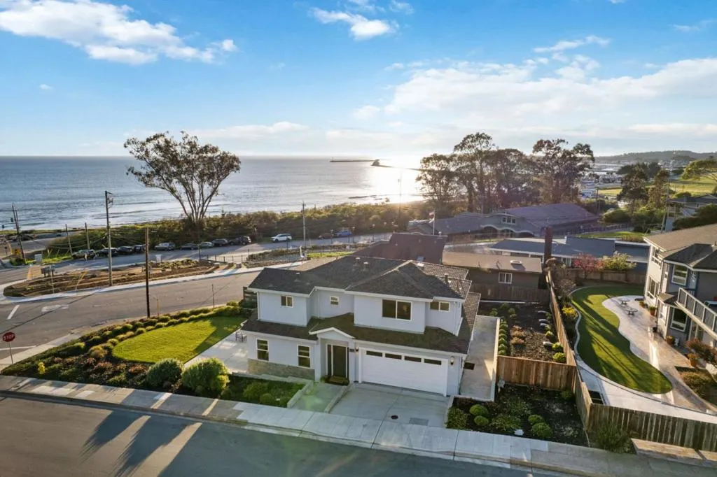 Completed in 2023 with meticulous craftsmanship throughout, this magnificent coastal retreat offers expansive ocean views from its prime location in the sunny heart of Lower El Granada. Just steps from Surfers Beach and the Coastal Trail, the home is perfectly positioned for refined coastal living.The modern open-concept layout centers around an expansive kitchen that flows effortlessly into the family room, anchored by a designer gas fireplace. Oversized custom sliding glass doors open to a large stunning ocean-view backyard an ideal setting for entertaining guests or unwinding while enjoying the coastal breeze.The gourmet kitchen features high-end appliances, a large breakfast island, modern stone countertops, and custom cabinetry.The main level includes a generously sized bedroom and a full bathroom. Upstairs, the spacious ocean-view primary suite offers an en-suite bathroom with large walk in shower, soaking tub and walk-in closet. Two additional well-proportioned bedrooms and another full bathroom complete the upper level.Conveniently located just a short stroll from the wonderful shops and dining at Pillar Point Harbor, as well as Quarry Park and much more.