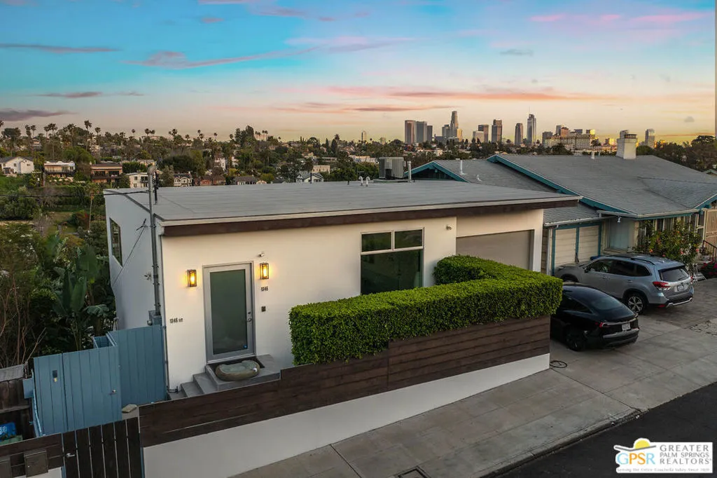 Seize this rare opportunity to own two houses on one lot, providing many lifestyle choices and investment opportunities. Live in an epicenter Silver Lake location, between Silver Lake Blvd and Sunset, with unobstructed and expansive views of downtown, the Silver Lake hills and beyond. The main contemporary 3BR, 3 full en-suite bath, upper house is striking, bright, and has a dramatic open floor plan with high ceilings and crisp finishes. The main living space offers varied entertaining possibilities and is quintessential LA living at its best! In addition to the main living area, an adjacent bedroom or den offers quiet when privacy calls. The Primary bedroom and a large guest BR are located on the lower level with a cozy TV/den area that opens onto an inviting deck for entertaining, dining or just enjoying the views and breezes outdoors. The lower 2BR, 2BA house also enjoys expansive views of the hills and surrounding mountains, is private and accessed through a hillside of native and drought-tolerant landscaping. There are many use options--it has been a great rental property or could be an in-law, au pair, home office or whatever you need it to be. This is a great opportunity to live in the center of Silver Lake within close proximity to many of the eclectic shops and signature restaurants that make this such a vibrant neighborhood.