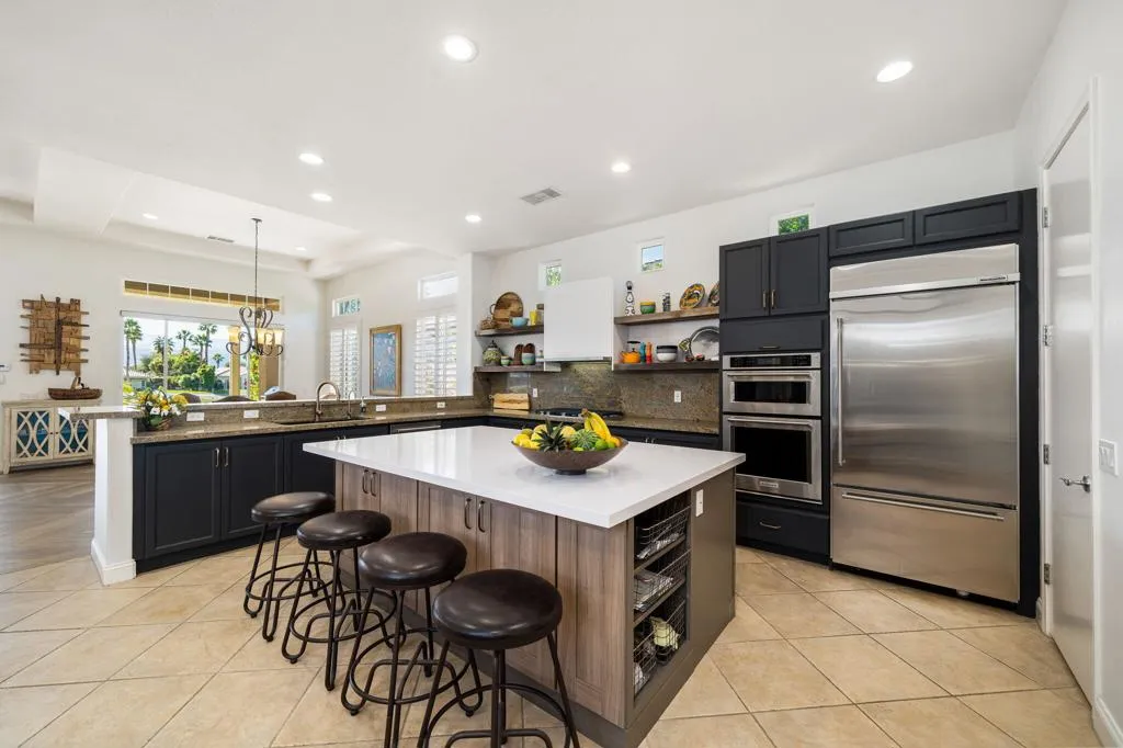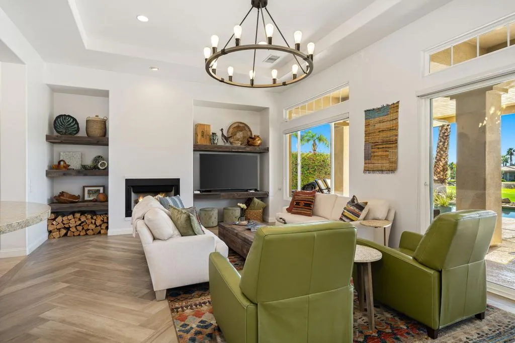 New Listing! Executive Mira Vista Golf Course RetreatLocated on the 16th fairway of the Gary Player Signature Course in Mission Hills, this stunning executive retreat offers sweeping golf course and mountain views along with a private sparkling pool and spa designed for luxury and comfort.Recently remodeled, the home features three en-suite bedrooms, including a detached casita complete with kitchenette and private bathroom. The primary and second bedrooms offer king-size beds, while the third bedroom features a queen bed. A dedicated office or optional fourth bedroom includes its own en-suite bathroom and a queen Murphy bed, providing flexible space for additional guests.Inside, soaring ceilings create a light and bright atmosphere throughout the home. Elegant wood-look tile flooring, a cozy fireplace, and expansive windows showcase the beautiful views.Outdoor living is just as impressive. Relax beneath the large covered lanai featuring a comfortable sofa lounge and dining area overlooking the fairway. The spectacular front courtyard offers another private space perfect for morning coffee or brunch. This home sits on a large private lot within the guard-gated Mira Vista community, surrounded by majestic palm trees.The remodeled kitchen features granite countertops, an island, and a wet bar, making it perfect for entertaining.Golf lovers will appreciate pay-as-you-play access to two nearby public courses, the Gary Player Signature Course and the Pete Dye Course, located just around the corner at the Westin Resort and Spa. Other nearby country clubs offer seasonal memberships.Enjoy a short drive to the famous El Paseo shopping and dining district, vibrant Palm Springs nightlife only 9 miles away, and Agua Caliente Casino just 5 minutes away.Take in majestic mountain and golf course views from the living room, dining area, kitchen, and primary bedroom. You may never want to leave this beautiful home on Via Bella, which means ''beautiful street'' in Spanish.