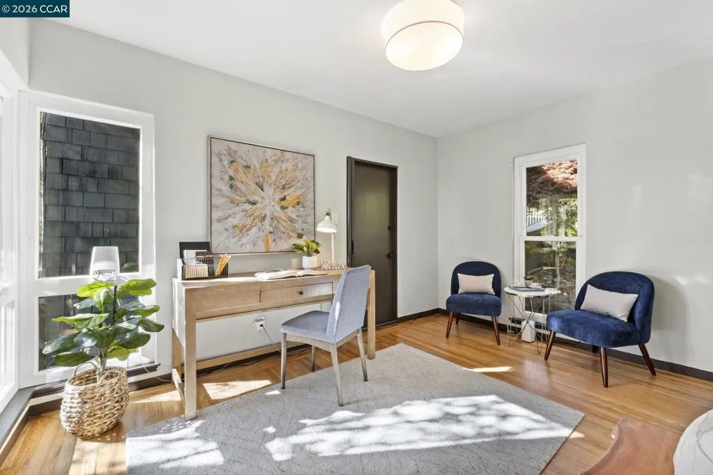A quintessential Berkeley home where comfort, style, and Bay views come together in perfect balance. Adjoining lot at 1162 Miller available makes it the perfect compound. Behind a peaceful front patio, this light-filled residence reveals a split-level layout that feels both open and thoughtfully defined — offering a seamless flow between gathering spaces and private retreats. The chef’s kitchen is the heart of the home, featuring quartz counters, custom cabinetry, premium appliances, and a wine fridge. It connects effortlessly to the dining area and a generous deck, perfect for al fresco dinners or relaxed mornings overlooking the bay. Three inviting bedrooms share the main level, including one that functions beautifully as a dedicated home office with its own private entrance. The lower level enhances the living experience with a welcoming family room, separate media area, wet bar, full bath, and a guest bedroom that opens to a private deck surrounded by greenery. Two laundry areas and a two-car garage add convenience to the home’s thoughtful design. Amazing fruit trees and a bocce court complete the backyard. This home offers the perfect harmony of sophistication, comfort, and connection to nature — a serene East Bay retreat designed for modern living. BESO (5)