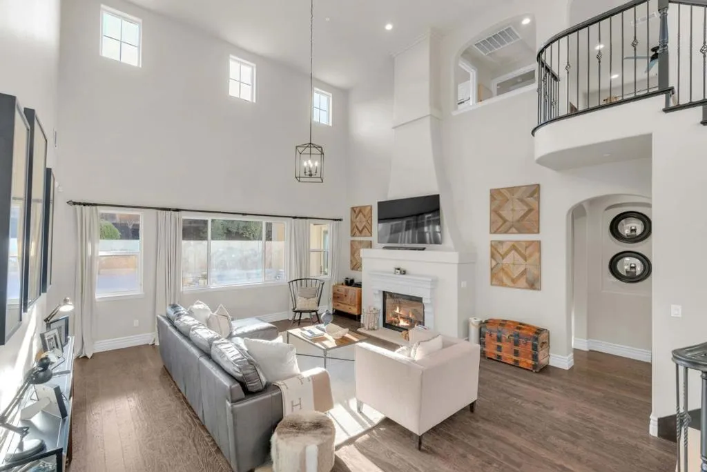Nestled inside the gates of Eagle Ridge Golf Club, this former builders model home offers 3,206 sq ft of upgraded living on a 12,000 plus sq ft lot. The home features extensive designer enhancements along with an additional $300,000 in renovations. The chefs kitchen includes gas cooktops, quartz countertops, an island with a sink, state of the art appliances, and two wine refrigerators. The layout offers four bedrooms, including lower level primary bedroom with spacious walk in closet and additional junior suite. Bathrooms have been updated with quartz counters, upgraded marble mosaic walls, and double sinks. The main primary suite includes a custom walk-in closet with built-in organizers, a chandelier, soaking tub, and walk-in shower. Upstairs features two additional bedrooms, a loft that can converted to a fifth bedroom, and a balcony with neighborhood views. Additional highlights include high ceilings, an inside laundry room, a welcoming fireplace, and a finished three car garage with polished epoxy flooring and an EV hookup. The backyard is ideal for entertaining with an in-ground fiberglass pool, a covered California patio, and a pergola lounge area. A rare offering that blends comfort, elegance, and significant upgrades, experience the best of Eagle Ridge living.