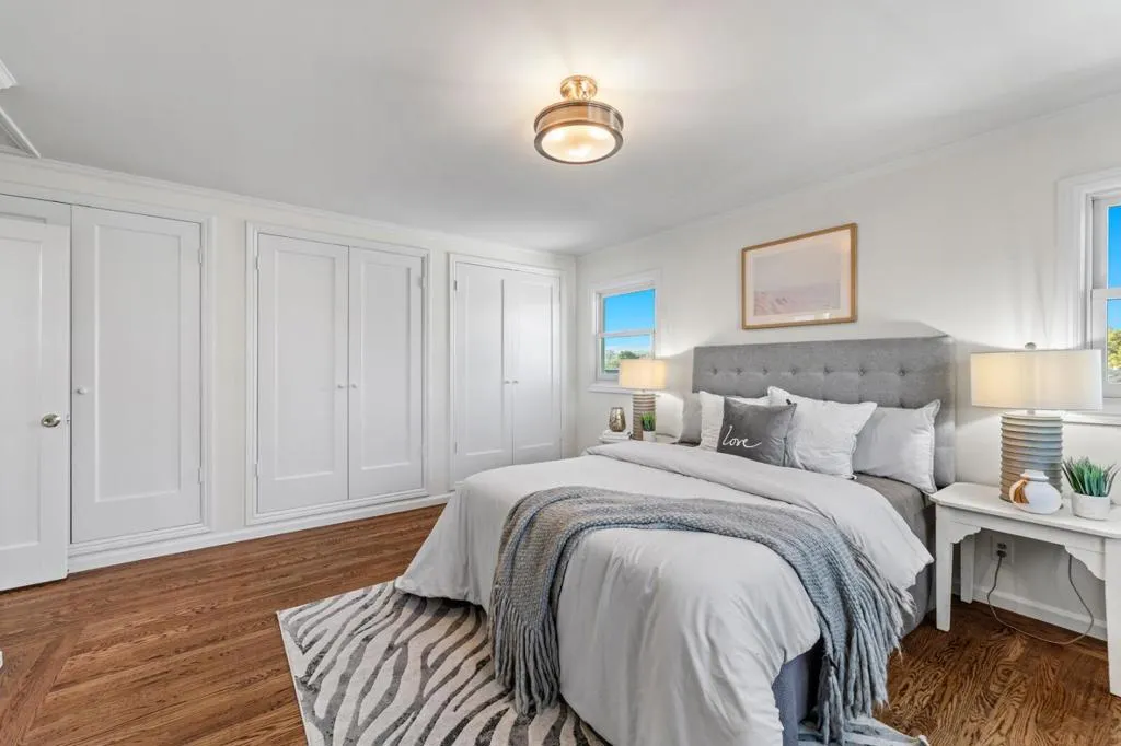 Your new lifestyle awaits in this exceptional, tri-level traditional style home nestled on a quiet tree lined round about cul-de-sac. Thoughtfully designed addition blends comfort w a versatile floor plan. Entryway reveals living room w vaulted ceiling and fireplace trimmed with built-in bookshelves. A charming vintage main stairway leads to 2 large bedrooms and full bath w stall shower, tub and quartz counter top vanity. Spacious and private third level primary ensuite with a wall of closets adjacent to the primary bath w stall shower and dual sinks w quartz countertop. Oversized family room w soaring vaulted ceiling, skylights, a raised brick fireplace replete w dual built-in bookshelves and large informal dining area. Glass pane door opens to the renovated side deck for extended outdoor living and year round entertaining. Sunny level yard w brick walkway. The heart of the home is the well appointed open concept kitchen featuring ample sleek quartz counters, breakfast/serving bar w seating, recessed lighting, expansive cabinetry and a double oven w separate gas cooktop. The convenient second stairway provides additional access to the upper level living quarters. Lower level enjoys a guest bath, home office and laundry room. Hardwood floors and double pane windows throughout.