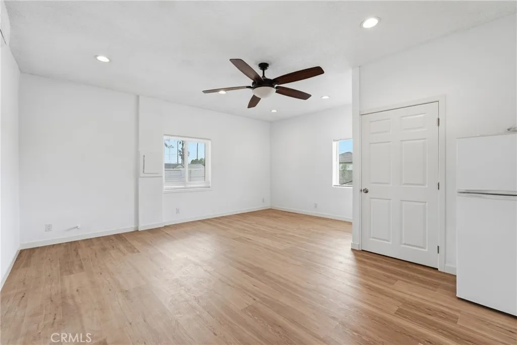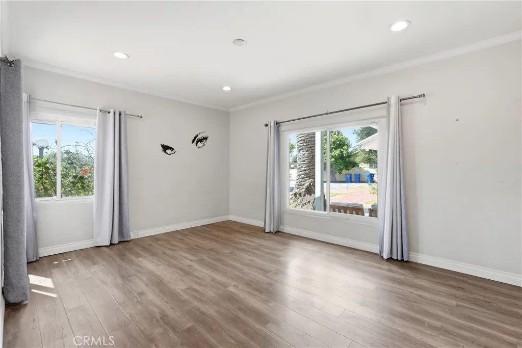 A resort style estate set on an expansive half acre corner lot (approximately 22,000 sq ft) that feels like your own private park. This unique property offers a main residence and separate detached guest house, expansive grounds, and a setting that feels more like a private retreat than a typical residential home. The single story main residence features 5 bedrooms and 4 bathrooms, including two primary suites, thoughtfully arranged across two sides of the home for added comfort and separation. The interior offers spacious rooms, modern finishes, recessed lighting, laminate flooring, wide doorways with accessible layout, and multiple walk-in closets throughout. At the heart of the home is a recently remodeled kitchen featuring a striking Calacatta quartz waterfall island, modern cabinetry, pantry, and updated appliances, creating a beautiful and functional centerpiece for both everyday living and entertaining. A separate newly remodeled 1 bedroom, 1 bathroom detached guest house with private entrance provides additional independent living space ideal for extended family, guests, office use, or staff quarters. The oversized corner lot offers multiple access points including main street entry, separate vehicle access, and rear alley access, allowing smooth circulation throughout the property and parking capacity for more than 15 vehicles, RVs, work trucks, or equipment. Outdoor amenities include a large pool, mature palm trees, and expansive yard space, enhancing the resort style atmosphere. With a main residence, detached guest house, half acre lot, and exceptional parking capacity, this property offers remarkable flexibility for large households, multi generational living, shared residential arrangements, or environments that benefit from multiple rooms and expansive outdoor space. The single level layout with wide doorways enhances accessibility and provides an ADA friendly design, making this a truly rare opportunity to lease a property of this size, flexibility, and unique character in the area.