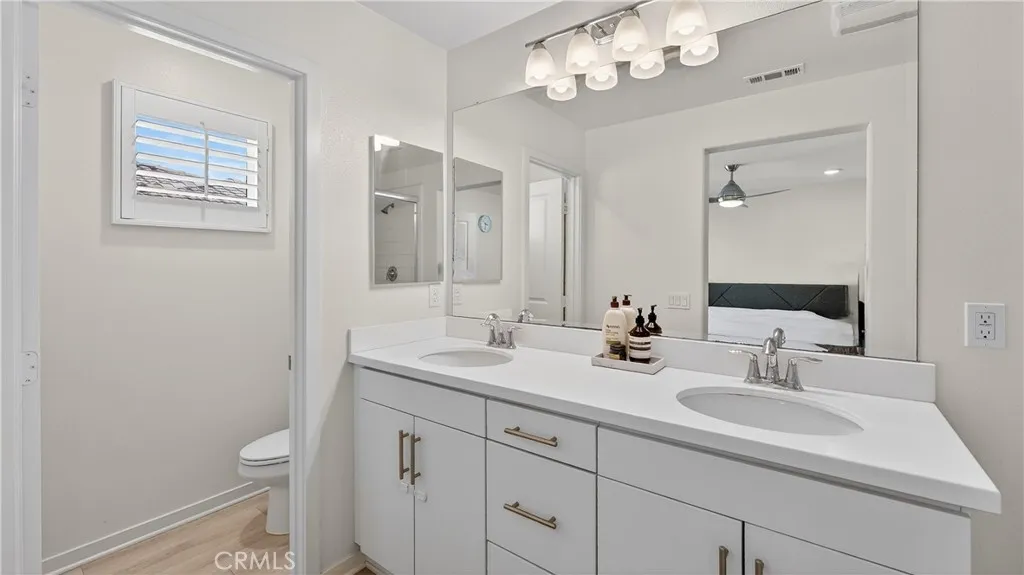 Welcome to 14116 Bay Street, a thoughtfully upgraded tri-level condominium in the desirable Laurel Walk community of La Mirada. Built in 2022, this modern condo is favorably situated within the community, just steps from the outdoor BBQ area and fire pit. The home far exceeds builder standards, offering a rare combination of sustainable energy, sophisticated air and water purification, and custom luxury. The home’s commitment to efficiency is anchored by an owned Sunrun solar system (2.72 kW) with Protection Plus, providing significant long-term energy savings. The interior features whole-house recessed lighting, plantation shutters, and premium flooring throughout. The second level offers a bright, open floor plan with modern laminate flooring and a gourmet kitchen that is a true centerpiece. It boasts sleek granite countertops, a deep farmhouse sink, custom white cabinetry with soft-close drawers and full-extension slides, and high-end Samsung stainless steel appliances. A reverse osmosis water filtration system and a private balcony just off the living area make this the perfect space for both daily living and entertaining. Energy efficient and clean at its core, the home features a Nest smart thermostat, a tankless water heater, and a professional-grade Lennox PureAir HVAC purification system for superior indoor air quality. The upper level features plush, premium Berber loop carpet leading to the primary suite with a ceiling fan in the primary bedroom and a spa-like ensuite. Located in between both bedrooms on the upper level is the laundry closet for ease and convenience. The spacious two car garage with direct home access features epoxy coated floors along with an EV ready outlet. Perfectly situated, this home is a short stroll from Foster Road Elementary, Hutchinson Middle School, La Mirada Community Regional Park, and La Mirada Golf Course, with easy access to the 5 and 91 freeways. A little further down the road are all of the grocery stores and great eats that Buena Park offers. Don’t miss out on this 4 years young, place to call home!
