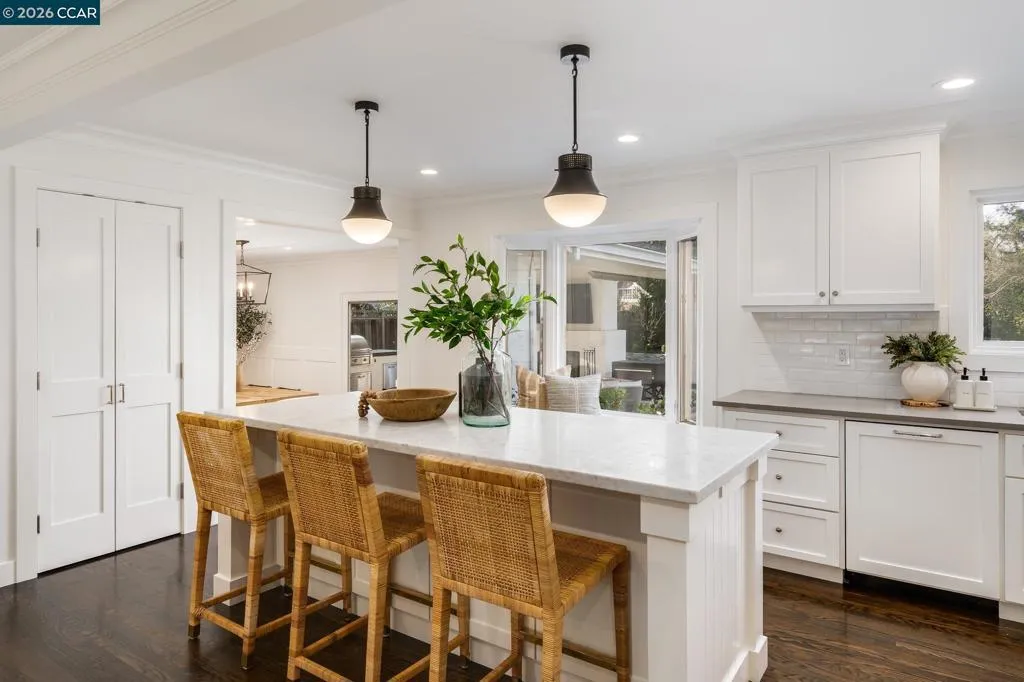 Welcome to this stunning, fully remodeled home in the sought-after Diablo Hacienda neighborhood, just moments from the prestigious Diablo Country Club. With over $800K in improvements, this exceptional residence blends timeless design, modern luxury, and incredible indoor-outdoor living. Gorgeous curb appeal leads to a thoughtfully designed interior with hardwood floors, smooth wall finishes, and high-end details throughout. The open-concept layout connects the living, dining, and kitchen areas, creating an ideal space for everyday living and entertaining. The chef’s kitchen features a marble countertop island, custom cabinetry, and premium appliances including a panel-ready refrigerator and dishwasher, and a Wolf range. Two bedrooms and a full bath on the main level offer flexibility for guests or a home office. This home shines outdoors with a Peter Koenig–designed backyard. A covered pavilion with fireplace, ceiling fan, and heating anchors the space, along with a built-in BBQ for outdoor cooking. A dining patio with custom pavers is perfect for al fresco meals. The yard also features an enclosed garden with raised beds, a large lawn, and a children’s play area. Located near Diablo Country Club, top-rated schools, scenic trails, and downtown Danville.