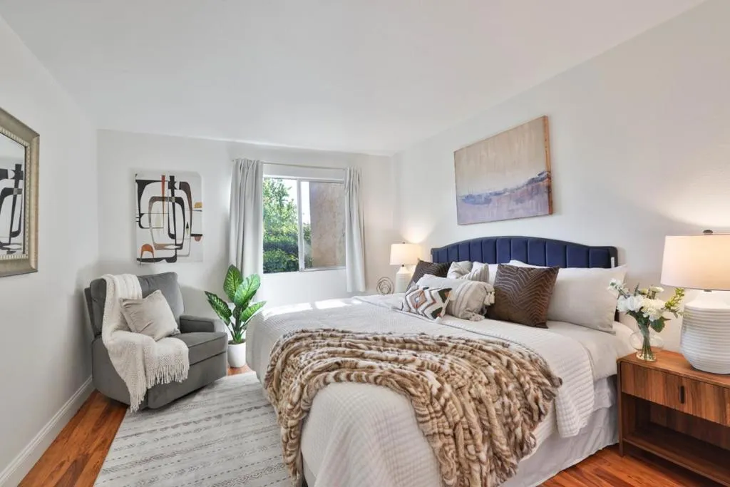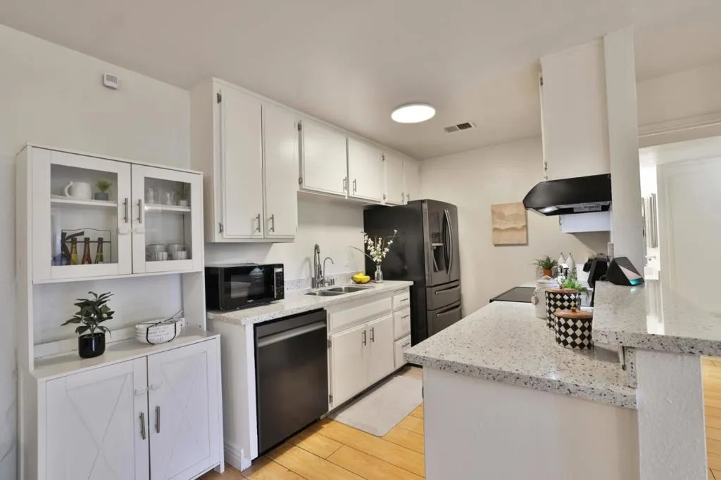 Welcome to this sun-filled ground-floor 1-bedroom, 1-bath condo offering 777 sq ft of comfortable living space in San Jose. With an open layout and abundant natural light, this home is an excellent opportunity for first-time buyers or anyone seeking an affordable entry into the Silicon Valley market. The inviting living room features a cozy fireplace and sliding glass doors that open to a private ground-level patio, perfect for morning coffee or relaxed evening entertaining. The updated kitchen boasts white cabinetry, quartz countertops, and stainless steel appliances, flowing seamlessly into the dining and living areas. The spacious bedroom offers a generous walk-in closet, a true standout for a one-bedroom, while the bathroom features stylish updated finishes. Additional highlights include attractive flooring and central heating and A/C for year-round comfort. Set within a secure gated community with electronic gate access, residents enjoy amenities including a pool, spa, fitness center, landscaped grounds, and on-site laundry. HOA covers water, garbage, and sewer. Just minutes from Regional Medical Center, Penitencia Creek Park, Target, Sprouts, Starbucks, and major commute routes including Highways 680, 101, and Capitol Expressway. FHA and VA financing eligible.