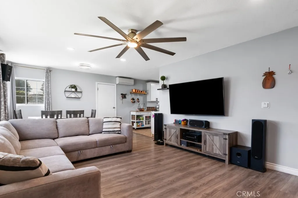 Situated on a desirable corner lot, this inviting 3-bed/1-bath home offers great curb appeal, an owned solar system, and a private in-ground pool - perfect for enjoying sunny Southern California living! The interior offers an open and spacious floorplan with recessed lighting, a neutral paint scheme, and laminate wood flooring throughout. The living room is light and bright, highlighted by an oversized industrial-style ceiling fan, and flows seamlessly into the dining area, creating an ideal layout for everyday living and entertaining. The kitchen features white cabinetry with abundant storage and stone countertops, offering both style and functionality. The main bedroom is a standout, showcasing beautiful beamed ceilings and a sliding glass door that opens directly to the backyard, providing a relaxing retreat. Two generously sized secondary bedrooms feature custom paint schemes, and there is a full-size bathroom. Step outside to enjoy the private backyard, complete with an in-ground newly replastered pool and grassy yard areas, perfect for outdoor relaxation, or entertaining. Additional highlights include an attached 2-car garage, driveway parking for two vehicles, and a convenient location with 3 grade level schools all located nearby including one of the best elementary schools in Pomona, Cortez Elementary Magnet School K-8, middle school, and high school. Also close to parks, shopping, and dining, with easy access to the 57, 71 and 10 Fwys - great for commuters. Schedule your private tour today!