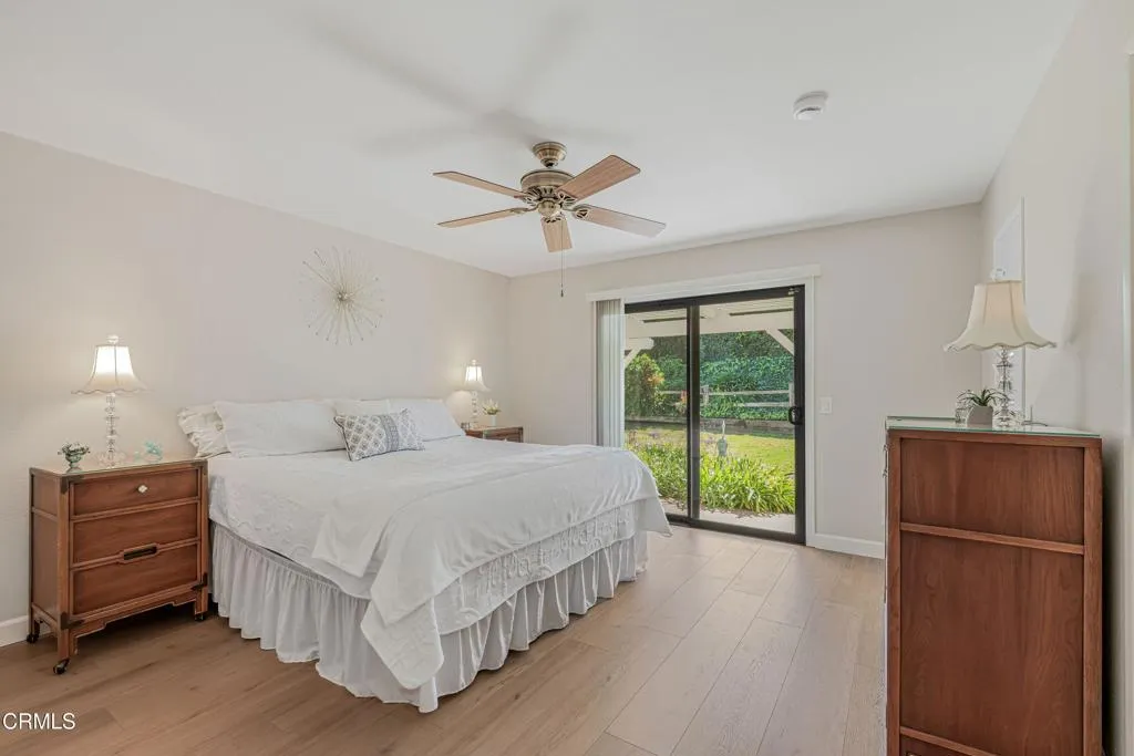 Modern Comfort Meets Classic Charm in Desirable Newbury ParkWelcome to this beautifully maintained 3 bedroom 2 bathroom home located in a highly sought-after area of Newbury Park. From the moment you arrive, you'll be impressed by the home's inviting front yard with striking curb appeal and attractive stone accents. Step inside to the spacious living room featuring vaulted ceilings, high quality laminate floors throughout and a stunning stone fireplace that creates a warm yet sophisticated atmosphere.The elegant dining area has a fantastic view of the lush backyard with easy access through a large sliding glass door. There is also a stylish tile bar that connects the kitchen and dining area making it convenient for entertaining inside and out.The kitchen is a true highlight, showcasing exquisite granite countertops, rich wooden cabinetry, stainless steel appliances and a large bay window that brings in plenty of natural light. Dual-pane windows are throughout the home.Adjacent to the kitchen, a spacious bonus room, also with sliding glass door access to the backyard, offers another charming fireplace and ample space making it ideal for family gatherings, game nights, or as a relaxing retreat or 4th bedroom.The expansive primary suite at the other end of the home features a large walk-in closet, access to the backyard through a 3rd sliding glass door, and a beautifully upgraded en-suite bathroom with a walk-in shower and dual rainwater showerhead. Two additional large bedrooms with big closets are light and comfortable and conveniently located adjacent to the 2nd full bathroom.Step outside to your own private oasis, an inviting backyard with plenty of room for outdoor activities, dining, relaxing, gardening; and easy access to a 10' x 12' TuffShed providing even more storage and endless transformation possibilities to make it your own special place. The property also features a large two car garage, with laundry hook-ups, additional cabinet space and overhead storage.This home perfectly blends comfort, style, and functionality ready for you to move in, make it your own and become part of a wonderful neighborhood.