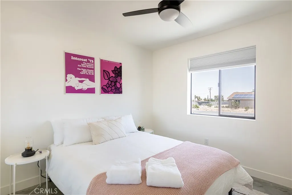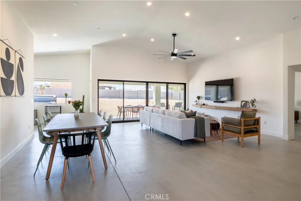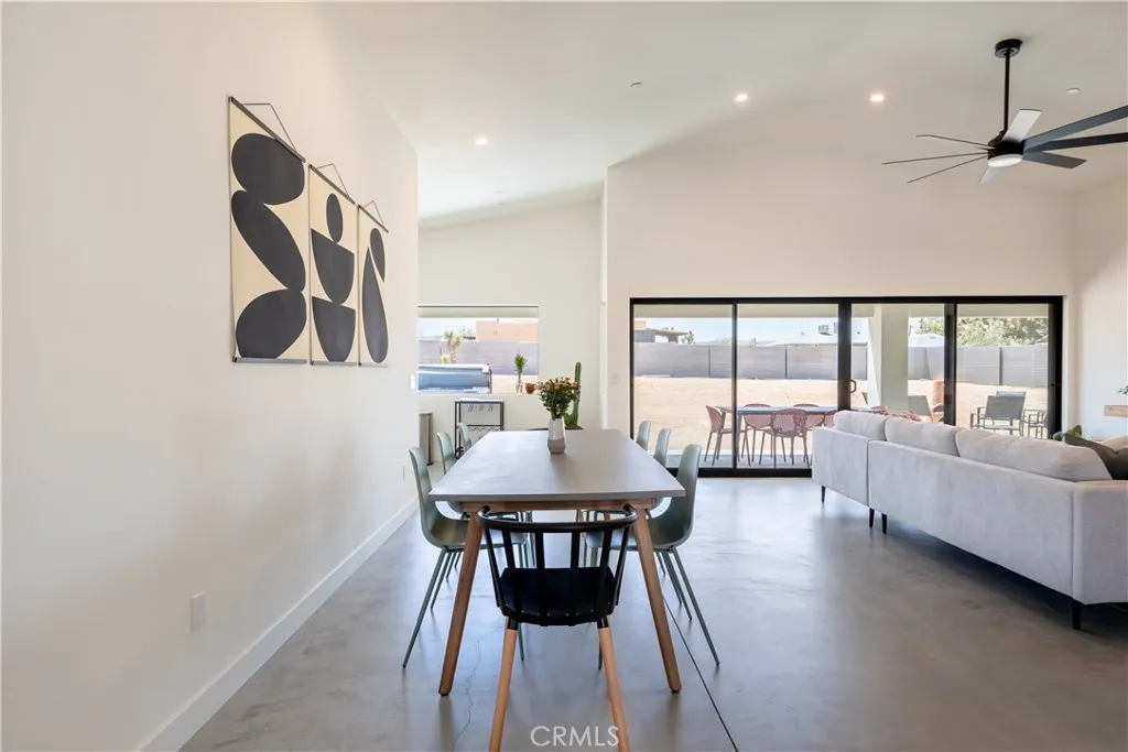 Stunning 4-Bedroom, 2-Bath Home on the Mesa in Yucca Valley! Set on a desirable corner lot with over half an acre of land, this 2022-built home offers the perfect blend of modern comfort and desert charm. Featuring 1,902 sq. ft. of open living space, soaring ceilings, and polished concrete floors throughout, this property is designed with both style and functionality in mind. The heart of the home is the expansive kitchen, complete with quartz countertops, stainless steel appliances, and a generous island that flows seamlessly into the spacious living room—ideal for hosting family and friends. Each of the four bedrooms offers plenty of room to make your own, while the primary suite is a true retreat with high ceilings, double vanity sinks, a huge walk-in closet, and a spa-like bathroom. Additional highlights include central heating and A/C, an indoor laundry room, and a covered back patio—perfect for enjoying peaceful mornings or relaxing evenings under the desert sky. This move-in ready home checks every box. Don’t miss your chance to own a modern desert oasis in beautiful Yucca Valley. Schedule your showing today!
