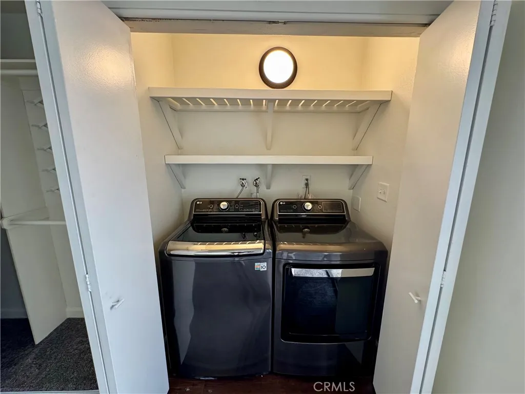 Beautifully updated and move-in ready, this charming 2-bedroom, 1-bathroom condo offers 938 square feet of thoughtfully upgraded living space and an attached two-car garage. Ideally situated as an end corner unit, this single-story home shares only one common wall, providing added privacy and a quiet, peaceful setting. The interior showcases numerous upgrades, including new flooring, baseboards, interior paint, roof, furnace, ceilings, and updated laundry closet shelving. The kitchen features a distinctive custom wood ceiling, while the bathroom has been tastefully remodeled. Additional highlights include ceiling fans and a custom vanity/desk nook in the primary bedroom. A washer and dryer are conveniently included in the primary bedroom area, and the home offers an abundance of storage throughout. This well-maintained residence reflects true pride of ownership and is completely turnkey. Located in close proximity to one of the community’s three pools, residents also enjoy HOA amenities including a clubhouse, pool and spa, tennis courts, BBQ picnic areas, and a dog park. Conveniently located near grocery stores, shopping, restaurants, and parks, with easy access to major freeways, this home offers both comfort and convenience in a desirable community.