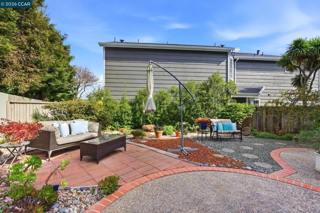 Welcome to this beautifully maintained corner-lot home in the gated Breakers Community, one of Marina Bay's most sought-after neighborhoods. This home boasts two stories, 3 bedrooms, 2.5 bathrooms, a two-car garage, and a functional layout that balances openness and privacy. A peaceful two-story living room with beautiful natural light and private views of trees and garden. The kitchen and den are open and spacious with ample storage, counters, and generous windows and French doors for true California indoor-outdoor living. Upstairs, the well-lit primary suite with cathedral ceilings has a walk-in closet, separate water closet, and oval soaking tub. Two additional bedrooms on the opposite side of the house share a spacious landing perfect as a home office. A sunny corner lot framed by beautiful redwoods and lush hedging - private, warm, and generously sized. Enjoy a secure gated entrance, a community pool and spa, and beautifully maintained common areas. Don't miss this opportunity just minutes from scenic walking trails, parks, the Marina Bay waterfront, Highways 80 and 580, BART, and the Ferry Terminal for an easy commute to San Francisco!