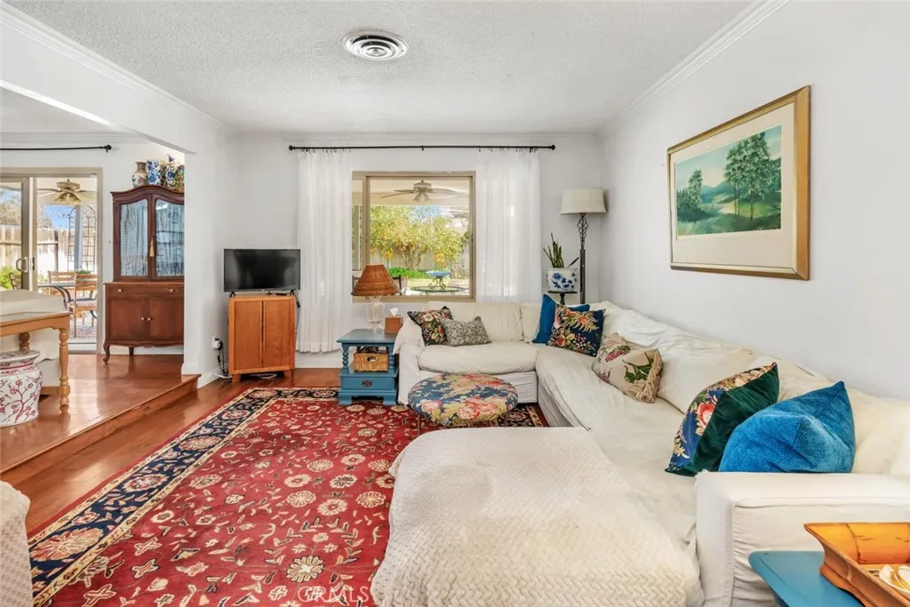 This charming property is move-in ready. The spacious floorplan offers timeless appeal. Enjoy peace of mind with new pex plumbing & new hot water heater. newer roof & forced air heater. Step outside to your beautiful park-like rear yard featuring a large covered lanai & a serene fountain. Delicious Meyer lemon & tangerine trees perfect entertaining or relaxing. You have a large corner lot with room for RV parking. Inside, you'll admire the large open feel, showcasing fresh paint, new window coverings, crown moldings, built in features, gorgeous hardwood and tile floors, upgrades and updates flow throughout! This home is also close to schools and handicap-accessible. Don't miss out on this one of a kind opportunity!
