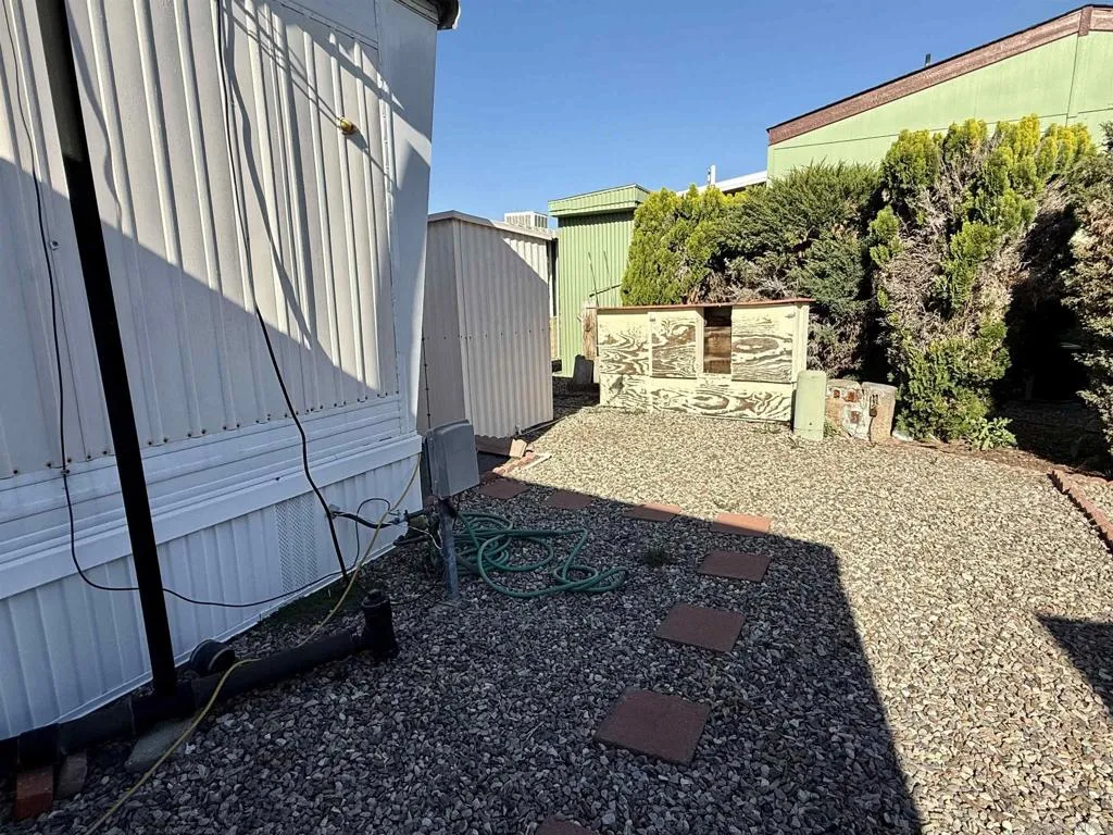 This is a fantastic opportunity to own a home in the exclusive Safari Mobile Lodge. A gorgeous retirement community for 55 years and up. Beautiful park with many amenities like a large swimming pool and clubhouse. This well maintained 2 bedroom, 1 bathroom home features an awning on both sides of the home. Covered porch. Covered parking for 2-3 cars. 3 sheds on the property. Brand new flooring, and much more. Access through the back part of the home and front porch. Decorative gravel rock and stepping stone landscaping.