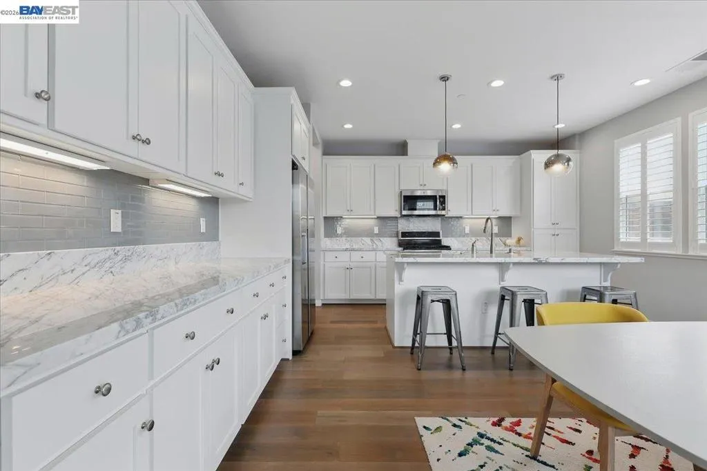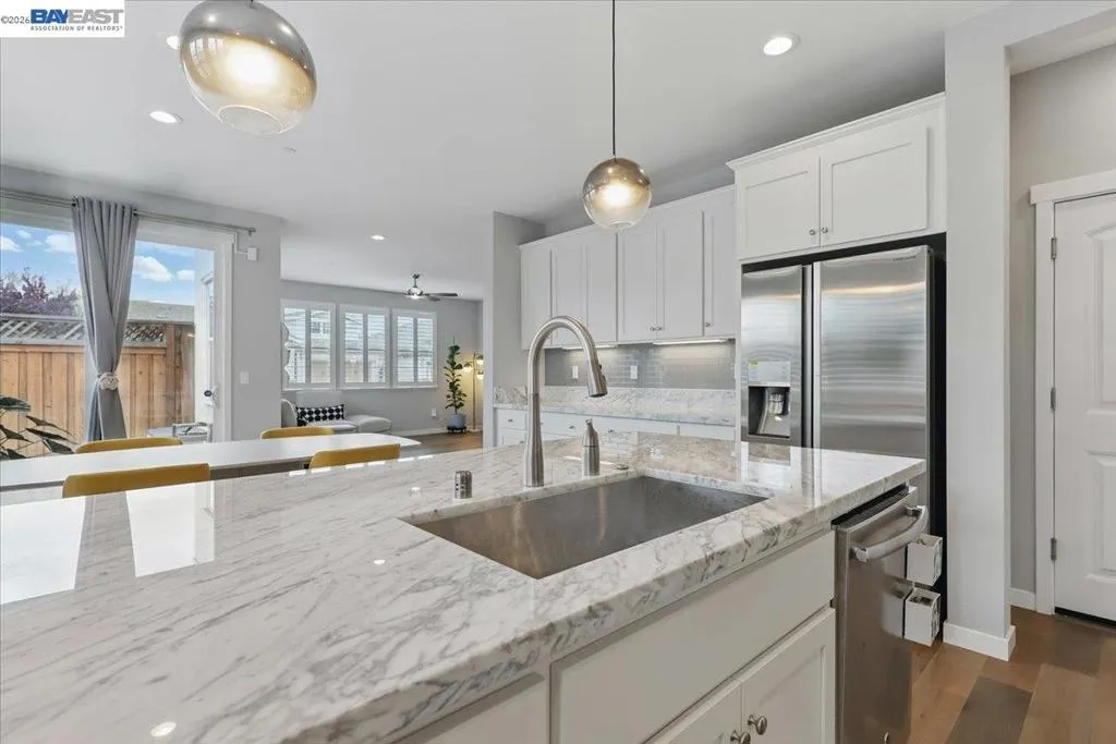 This beautifully upgraded 2,059-square-foot, 4-bedroom, 2.5-bathroom home, built in 2017, is nestled in one of Newark’s most desirable neighborhoods, offering both modern comfort and convenience. The open-concept layout features a remodeled kitchen with elegant marble countertops, sleek modern cabinetry, and premium stainless steel appliances—ideal for both entertaining and everyday living. A bright and spacious living area flows seamlessly, creating an inviting atmosphere. The tranquil primary suite includes a walk-in closet with custom shelving for optimal storage and organization, along with a private ensuite bath. Three additional bedrooms provide flexibility for family, guests, or a home office, while a bonus small office on the first floor offers a quiet workspace for remote work or study. Energy-efficient solar panels reduce utility costs, and the peaceful backyard provides a relaxing retreat. Minutes from Highway 84 and I-880, this home offers effortless commuting to Silicon Valley and beyond. Nearby shopping, dining, parks, and trails make this move-in-ready home a fantastic opportunity.