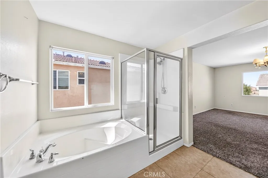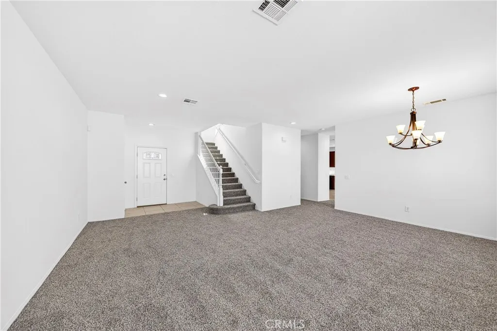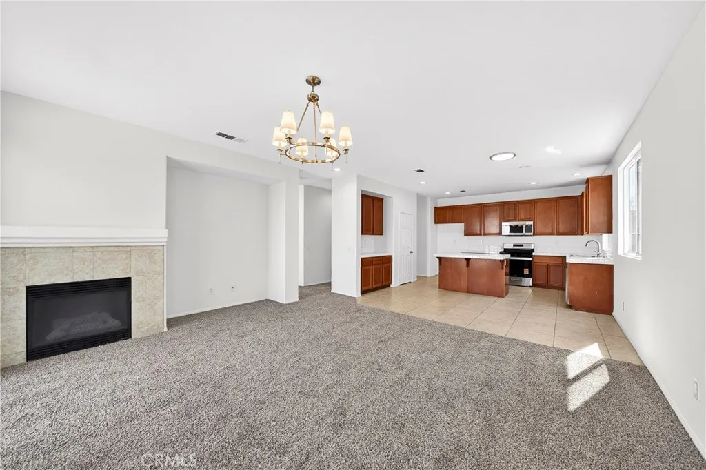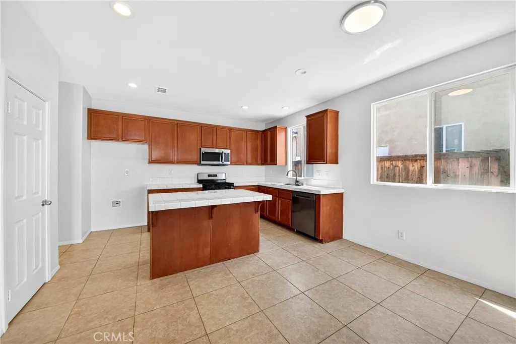 Beautiful two-story home featuring 5 bedrooms, 3 full bathrooms, a spacious loft, and a 2-car garage, located in one of the best areas of Hesperia with no HOA and Low Taxes. This well-maintained home offers a bedroom and full bathroom on the main floor, ideal for guests or multi-generational living. Fresh Interior paint and New Carpet on the main level and staircase give the home a clean, move-in-ready feel. The bright and airy living room and formal dining room combo provide a great space for entertaining. The spacious kitchen features Brand-New Stainless Steel Appliances, a large center island with bar seating, stainless steel sink, plenty of cabinetry, and a large pantry. The kitchen opens to the family room with a cozy fireplace, perfect for gatherings and everyday living. Upstairs you will find a large open loft that can easily be used as a media room, game room, or additional living space. The primary suite includes a spacious bedroom and an en-suite bathroom with walk-in shower, Roman soaking tub, dual vanity sinks, and a large walk-in closet. Three additional good-sized bedrooms and a full bathroom with dual sinks complete the second level. The laundry room is conveniently located upstairs for added functionality. The good-sized backyard offers plenty of space to create your ideal outdoor living area. Conveniently located near schools, shopping, and freeway access. A great opportunity to own a spacious home in a desirable Hesperia neighborhood.