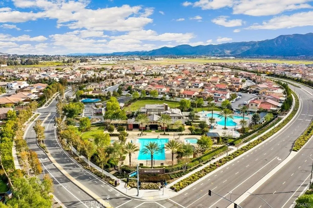 Turn-Key Summerly Home with PAID OFF SOLAR! Beautifully upgraded 4 bedroom, 3 bathroom Meritage home featuring abundant natural light, recessed lighting with dimmers, plantation shutters, a tankless water heater, and paid off RainSoft water softener system. The backyard includes a large patio for entertaining and the low maintenance front yard includes artificial turf. The stylish kitchen features white cabinetry, stainless farmhouse-style pulls, white subway tile backsplash, black granite countertops, stainless steel appliances, a walk-in pantry, and a large island with seating for four. The open layout flows into the dining area and living room with ceiling fan. Upgraded waterproof LVP flooring downstairs and neutral carpet upstairs complement any décor. A downstairs bedroom with easily accessible bath is perfect for guests or multigenerational living. Upstairs includes a laundry room with built-in shelving, two secondary bedrooms, and a spacious primary suite with a versatile nook, oversized walk-in shower, dual sinks, private toilet room, and large walk-in closet. The garage offers overhead storage. Residents of the Summerly community in Lake Elsinore enjoy resort-style amenities including pools, splash pad, sports fields, parks, trails, and nearby Lake Elsinore Diamond Stadium. Conveniently located minutes from the Interstate 15, Lake Elsinore, shopping, dining, and everyday essentials.