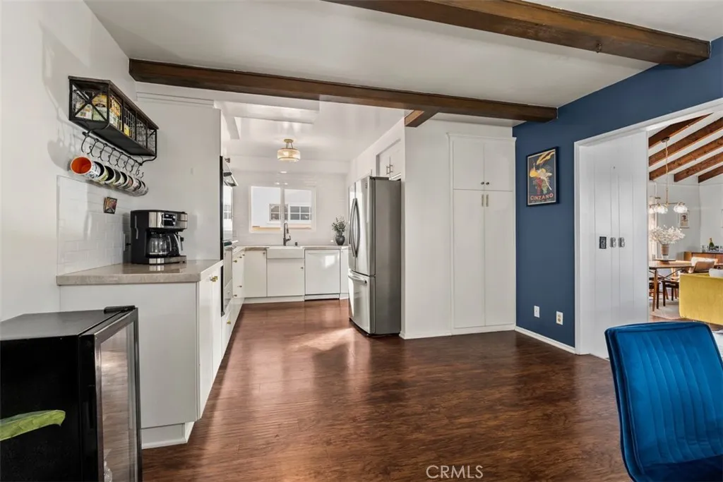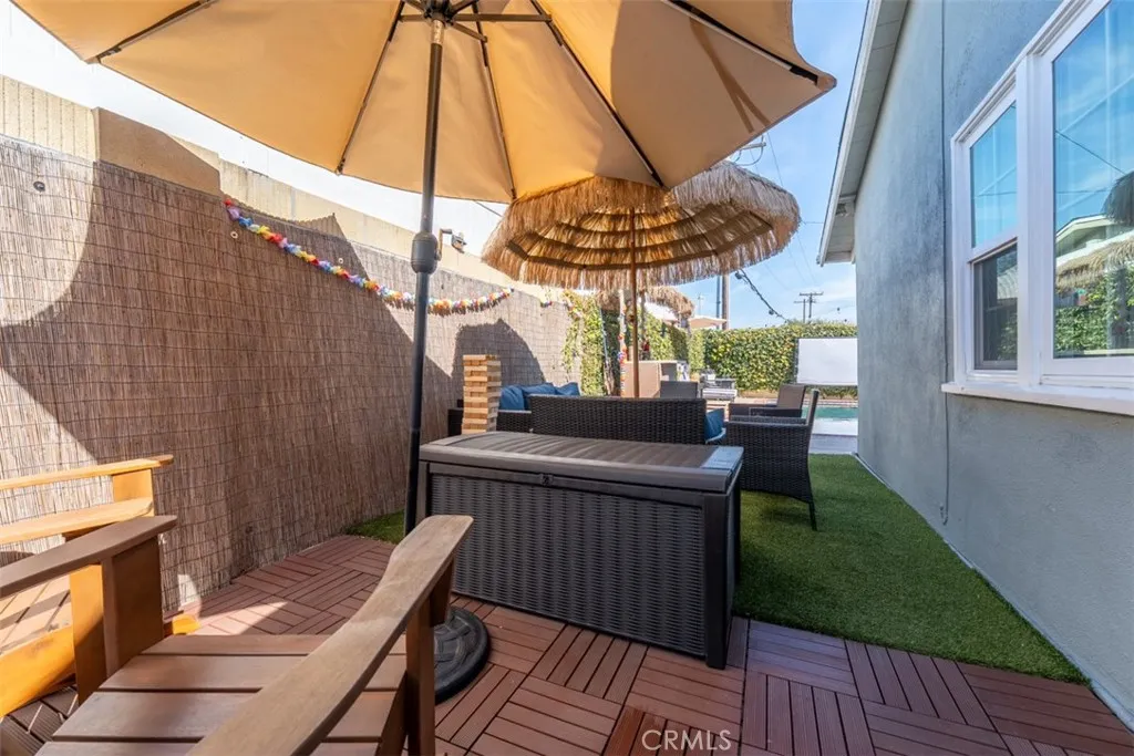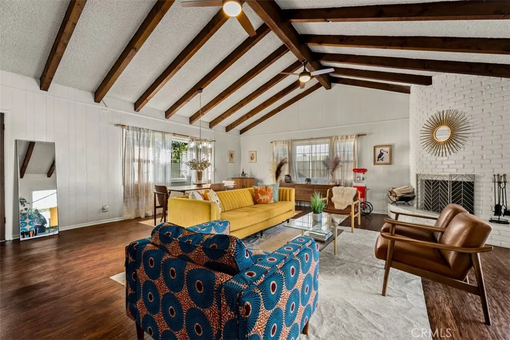 Welcome to an entertainer’s dream home where timeless character meets resort-style living. Nestled on a spacious corner lot size of 6,890 sq.ft. This beautifully maintained home invites you to escape into your own private oasis, featuring a stunning heated swimming pool, remodeled & aligned to Pebble Tech and meticulously landscaped backyard designed for gatherings and enjoyment. Built in 1963, this move-in ready home offers 2,142 sq.ft of living space, highlighted by an expansive Great Room—the true heart of the home. Designed for hosting, this impressive space features beam ceilings, a wood-burning & gas fireplace, and seamless indoor-outdoor flow to the backyard retreat with views of the sparkling pool. The open-concept layout continues into the gourmet kitchen. This inviting space flows into the dining area with built-in seating, creating the perfect setting for casual family meals. The kitchen features a classic farmhouse sink, subway tile backsplash, soft-close cabinetry, and stainless steel appliances, including a built-in microwave, dishwasher, and double-oven range. Adjacent to the kitchen is a laundry room with additional pantry and storage space. A cozy den with custom built-ins and its own fireplace offers a versatile retreat—ideal as a library, media room, or relaxing lounge. The primary suite offers an en-suite bath featuring custom cabinetry, quartz countertops, a beautifully tiled shower, and designer hardware. One closet is enhanced with California Closet organization. The second full bathroom features a double-sink vanity, quartz countertops, & additional storage cabinetry. Additional highlights include central air conditioning and heating, new LVP flooring in all the bedrooms and the den plus ceiling fans throughout most of the home for year-round comfort. The front yard is enclosed with vinyl fencing and enhanced with raised brick and stone hardscape seating, creating a charming gathering area. Mature lemon, lime, and tangerine trees add to the home’s inviting garden setting, while the spacious yard provides plenty of room for children or pets to play. Located in a desirable coastal community within fifteen minutes away from the beach residents enjoy convenient access to major roads, local shops and restaurants, and highly regarded schools with the Westminster Mall transformation "Bolsa Pacific" redevelopment will feature 2,250 residential units, a 120-room hotel, and 220,000 square feet of retail space.