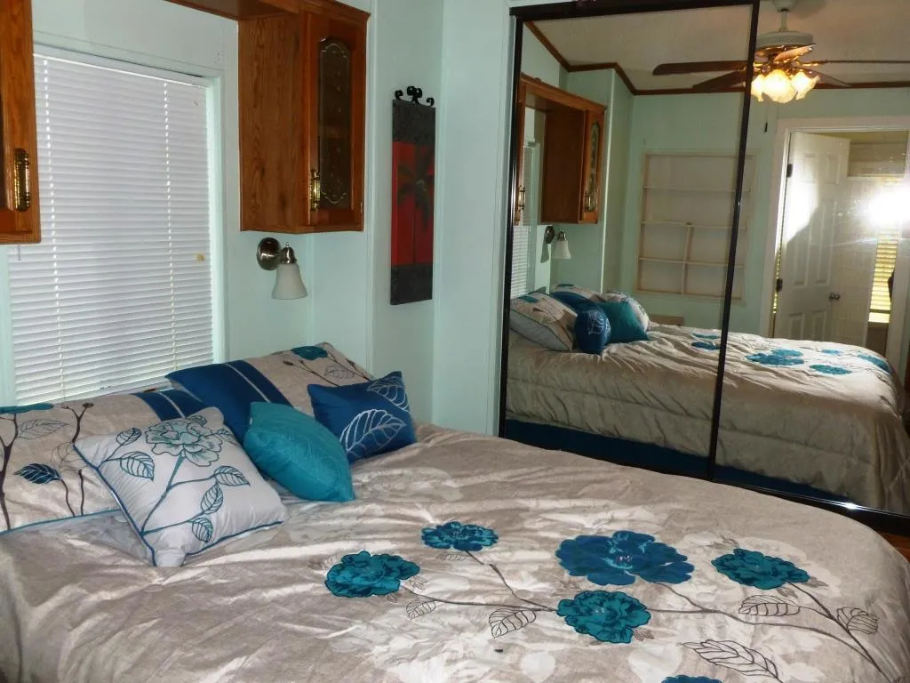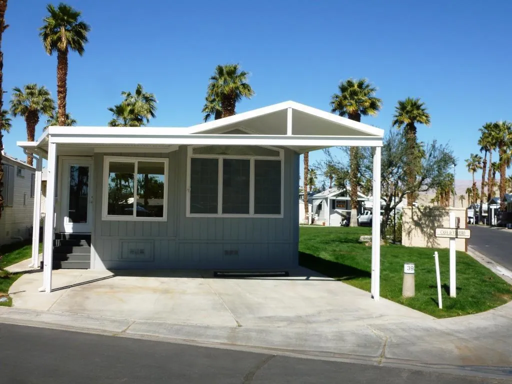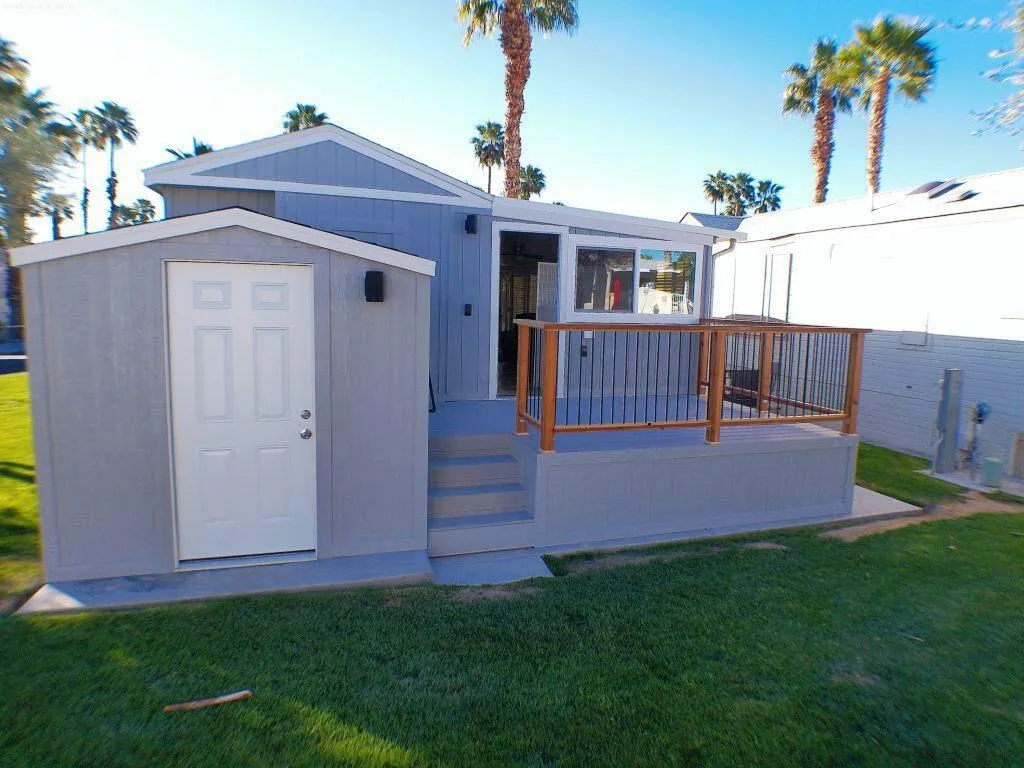 Upgraded Fleetwood Park Model with Enclosed Deck for extra living and entertaining area. New Deck and Shed just completed in March '26. Owner installed a barn door between enclosed deck and park model Covered parking and wonderful storage shed. This beautiful Park Model on a corner lot is being offered Turnkey furnished and includes porcelain tile throughout, Washer/Dryer , Stove, Microwave & Fridge, New Toilet & Shower, 2 TV's New Comforter, 2 Car Parking, Close to Clubhouse #2, Mountain Views. Rancho Casa Blanca is a 55+ Active Lifestyle Resort Community where you own the land & is perfect for your winter hideaway. Rancho Casa Blanca (RCB) features a beautifully landscaped 80-acre property with 801 individual Park Model homes/or RV sites, Two large clubhouses that function as social hubs & 4 satellite buildings with laundry facilities, mailboxes, heated pools & relaxing spas. As an owner you will enjoy FREE GOLF on your 18-hole par 3 golf course, a 9-hole putting course, 2 practice chipping/putting greens, 6 heated pools/spas, 2 tennis courts, 8 pickleball courts, shuffleboard courts, horseshoe pitch, fitness center & over 60 Clubs & Classes.