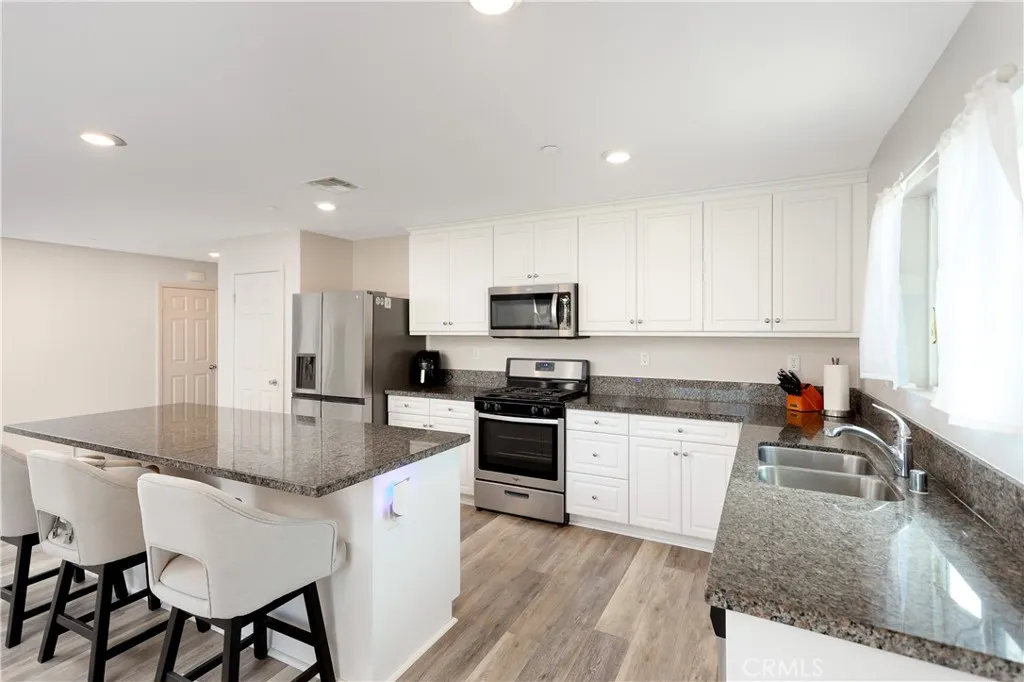 Welcome to this beautifully maintained 2019-built home, designed for both comfort and convenience. Featuring a bright, open-concept layout, this home offers seamless flow between the living, dining, and kitchen areas—ideal for everyday living and entertaining. The kitchen is the heart of the home, complete with a large granite island, abundant counter space, and crisp white cabinetry, providing both style and functionality for gatherings of any size. The spacious primary suite is privately situated away from the additional bedrooms, offering a quiet retreat to unwind at the end of the day. Enjoy the benefits of energy-efficient living with features such as solar panels, a tankless water heater, smart thermostat, and fire sprinkler system—helping provide both comfort and potential cost savings. Outside, the low-maintenance front yard with drought-tolerant landscaping and a drip irrigation system makes upkeep simple and efficient. A two-car garage adds convenience and extra storage.