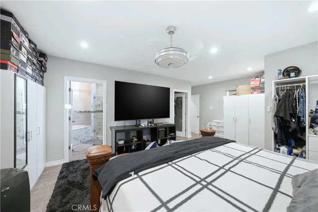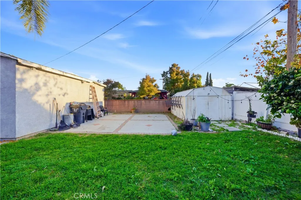 This 4-bedroom, 2-bath home offers approximately 1,390 sq ft of living space on a 7,002 sq ft lot. A covered front porch leads into the open living and dining area featuring a fireplace and large windows providing natural light. The kitchen includes granite countertops, white cabinetry, tile backsplash, and a center island for food prep and storage. The primary bedroom features recessed lighting, a walk-in closet, and an en-suite full bathroom with soaking tub, and separate glass-enclosed shower. A ¾ hall bathroom serves the additional bedrooms. Interior spaces include updated flooring and ceiling fans in multiple rooms. The backyard includes a grass area, patio space for outdoor seating or dining, an above-ground spa, and a grapefruit tree. The long driveway provides access to a detached 2-car garage with additional off-street parking. Located near neighborhood parks, shopping centers, dining options, and major transportation routes.