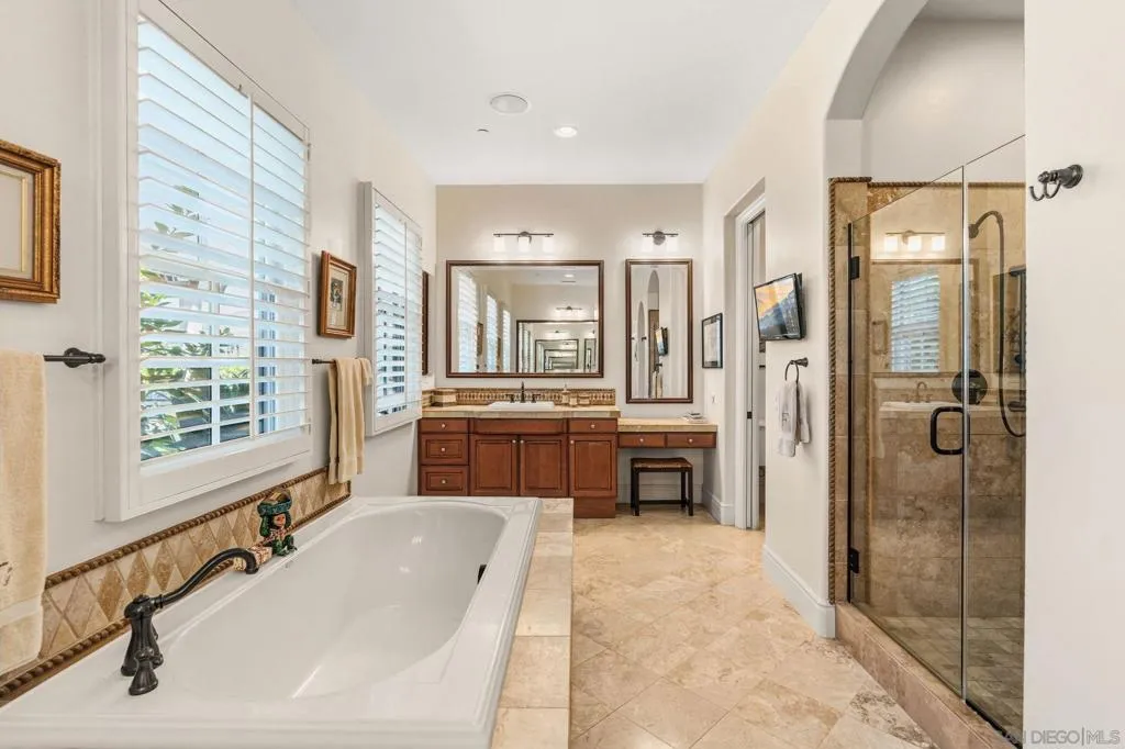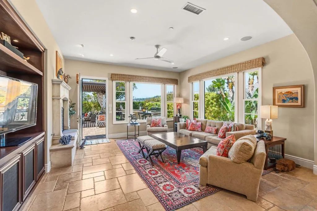 Location! Location! Location! Exquisitely customized with the highest quality of finishes, materials and amenities, this pristine property offers perfection. Peacefully sited across from a private park and enjoying an exceptionally large, flat, all usable homesite WITH PROTECTED VIEWS, this 3 bedroom, executive library, 2 Family room home is completely turnkey! And, the property's ideal sun orientation allows living the California lifestyle year round! Polished stone flooring throughout, exactingly executed built-ins and cabinetry in abundance, and a floorplan that lives like a *single level with the beautiful Primary Suite on the first level* The 2 secondary bedrooms (one with separate outdoor access) as well as the second family room are on the second level. Enjoy the one-of-a-kind gorgeously handsome library/executive office outfitted by a master wood crafter, adorned with walnut, Carpathian elm, and a strikingly attractive fireplace. Fireplaces also enhance the serene first floor master suite, the perfectly proportioned family room with built-in entertainment center, and the private side patio. In addition, an inviting stone clad fire pit awaits in the very large, all usable rear garden! As functional as it is attractive, the outdoor BBQ cooking station, large trellised patios, exceptionally ample green space and a soothing waterfall cascading into the outdoor spa optimize the view-oriented site. Additional features include: 3-car garage with epoxy floors and capacious built-ins . Enlarged and enhanced utility room. Spacious customized closets . Security system . Sophisticated window treatments--some remote controlled . Phantom screens on French doors . Lush mature landscaping . Raised beds for gardening. Hardscape highlighted with handset stone . Fenced rear gardens. The Crosby Club presents a variety of membership choices for interested individuals. It boasts an exquisite Golf Course, a sophisticated Golf Club House, and a sports Club equipped with a fitness center offering a wide range of fitness classes, personal training services, tennis courts, and a splendid pool with cabanas and a delightful hot tub. Moreover, the club provides a ballroom and a restaurant that offer breathtaking views of the renowned Crosby Golf Course. Both children and adults can partake in numerous activities offered at the club. It is important to note that access to these club amenities requires a membership. To obtain detailed information regarding membership options at the Crosby Club, kindly reach out to the listing agent. The grounds of the Crosby Club resemble a serene park-like environment, featuring pleasant walking paths and three parks. One of these parks is adorned with four ponds and water features, while another offers a playground conveniently located within walking distance from the house. For added peace of mind, the Crosby Club is a gated community with around-the-clock security, providing a secure and sheltered living environment.