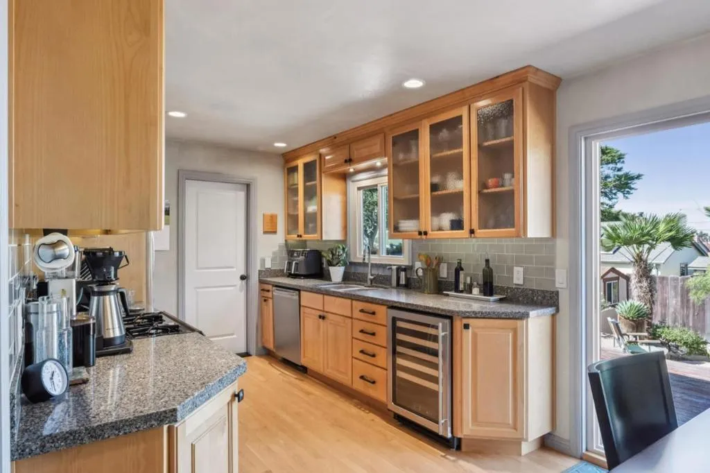 Slice of Paradise in Monterey. This 2BR/1BA home offers thoughtful updates and versatile living spaces in a convenient coastal location. Low-maintenance, drought-tolerant landscaping enhances curb appeal, while the backyard is designed as a private retreat with paver patios & walkways, a spacious deck, hot tub, serene water fountain, and cozy fire pit perfect for entertaining or relaxing. The home has been meticulously maintained with the interior featuring refinished hardwood floors, dual-pane windows, fresh paint, and updated lighting. The living room with fireplace serves as a welcoming gathering space. 2 bedrooms are spacious and comfortable. Remodeled kitchen includes upgraded cabinetry, countertops, modern fixtures, contemporary lighting, and built-in wine refrigerator. Additional improvements include upgraded plumbing, newer wall furnace, epoxy-coated garage floors and so much more. Move-in ready, this home combines functional indoor spaces with a thoughtfully designed backyard, offering a rare opportunity to enjoy the Monterey coastal lifestyle at its best.