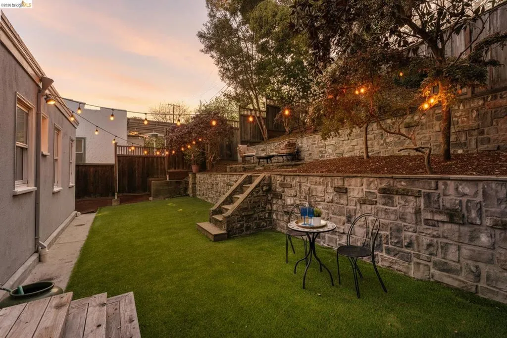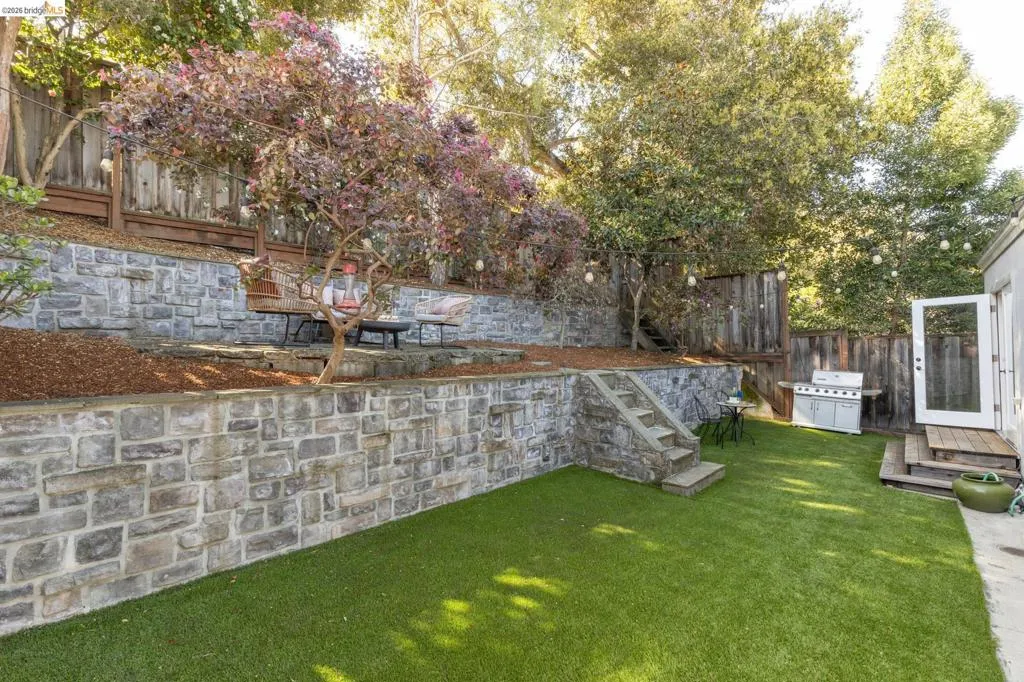 This picturesque home is set among Sycamore trees in the heart of Oakland’s close knit, ultra-desirable Trestle Glen neighborhood, with the award-winning Crocker Highlands Elementary and the best of Lakeshore Avenue’s shopping district nearby. Rich architectural details abound, from the double crown molding, oak floors and tall divided light bay windows to the wood mantel above the living room fireplace. A sun-drenched formal dining room leads to a functional kitchen with access to the backyard. The powder room and laundry area are located just at the end of the main hallway. Atop the split-level stairs sits a full bath and two spacious bedrooms – one with direct backyard access through french doors. An independent lower-level bedroom suite with full bath enjoys its own separate entrance and begs for use as a private office or au pair. The private, low-maintenance backyard includes mature landscaping, a level space of artificial grass, space for outdoor entertaining, and a flagstone patio that is perfect for lounging.
