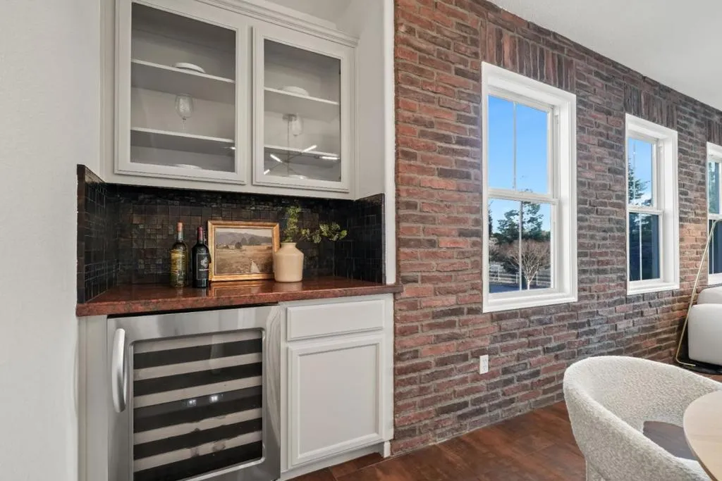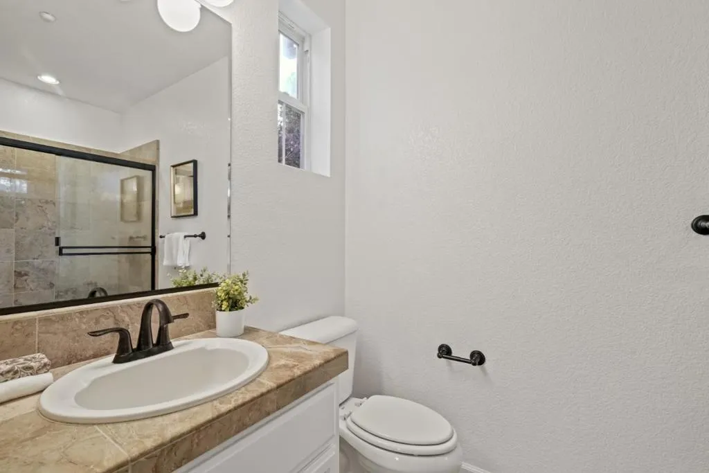 Former model end-unit townhome in Mountain Views luxury Mondrian community. This home features three ensuite bedrooms, including a ground-level suite with patio access, perfect for guests or a home office. The main level offers a seamless bright entertaining and kitchen layout with a gas fireplace that anchors the living room. The level is complete with upgraded tile flooring, decorative brick wall, large balcony, bar area with wine refrigerator, luxurious island kitchen and stainless steel appliances. Additional highlights include central heat and A/C, separate laundry room, upgraded built-ins on all levels, and an attached two-car garage with storage around. The home is detached on three sides with an abundance of light. Set in a serene tree-lined community with a pool, spa, playground, and BBQ area, near Sylvan Park with tennis courts. Minutes to The Village at San Antonio Center for dining, groceries, and entertainment. Easy access to Caltrain, VTA Light Rail, and Highways 101, 237, 85, and 280. Only 3 miles to Google and other major Silicon Valley employers.