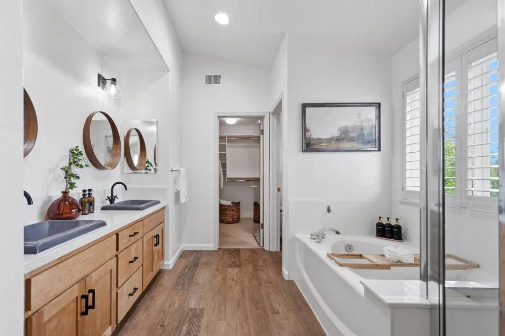 Rare newer construction in the heart of Cambrian with soaring vaulted ceilings and NO HOA! Beautifully remodeled 3BD/2.5BA single-family home offering approx. 1,634 sq ft of bright and inviting living space. The open floor plan is filled with natural light and features spacious living and dining areas ideal for both everyday living and entertaining. The gourmet kitchen showcases stainless steel appliances, gas range, and slab granite countertops. Additional highlights include new engineered flooring, recessed lighting, plantation shutters, interior panel doors, indoor laundry, and central heat & A/C. The spacious primary suite offers a relaxing retreat with soaking tub and large walk-in closet. Enjoy the private backyard with mature landscaping, perfect for outdoor dining and gatherings. Conveniently located near parks, Trader Joes, Costco, and major Silicon Valley employers including Netflix. Close to Steindorf STEAM School and The Harker School Middle School campus. Minutes to vibrant downtown Los Gatos, shopping, dining, and convenient commute routes. Located in a small and desirable community where only three homes have sold in the past five years, making this a rare opportunity.